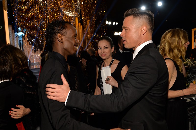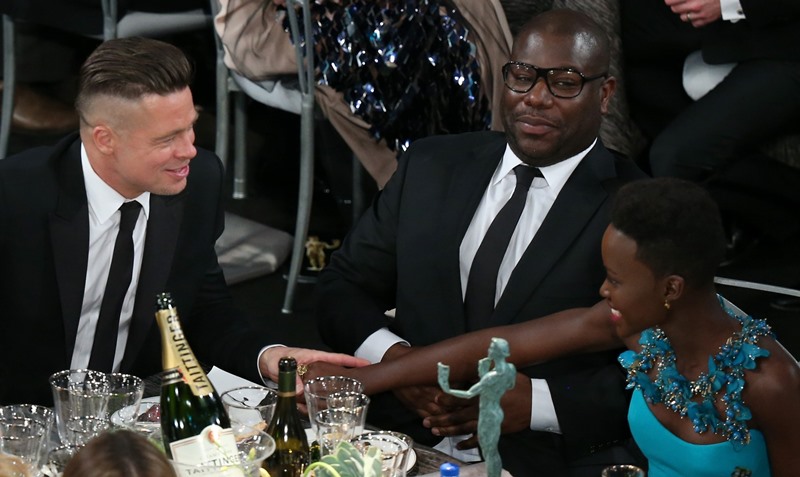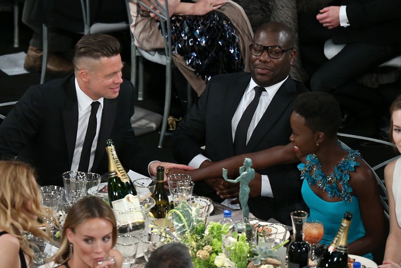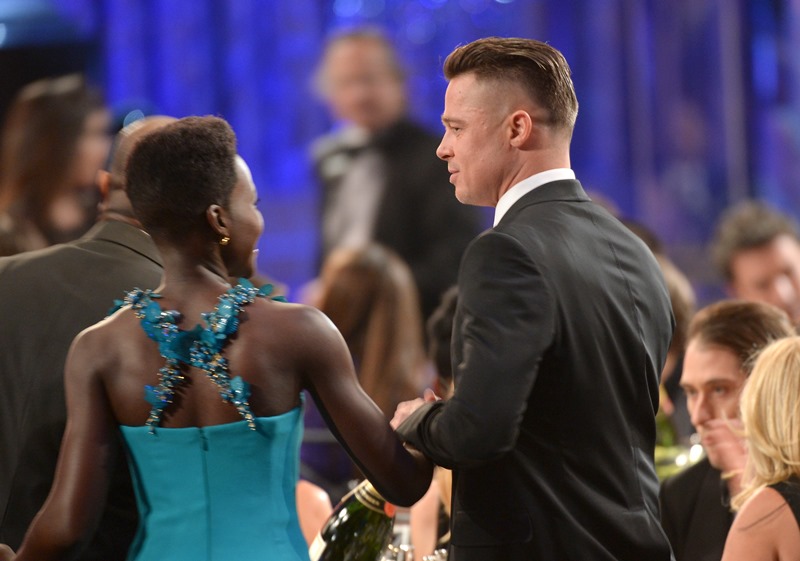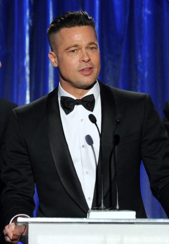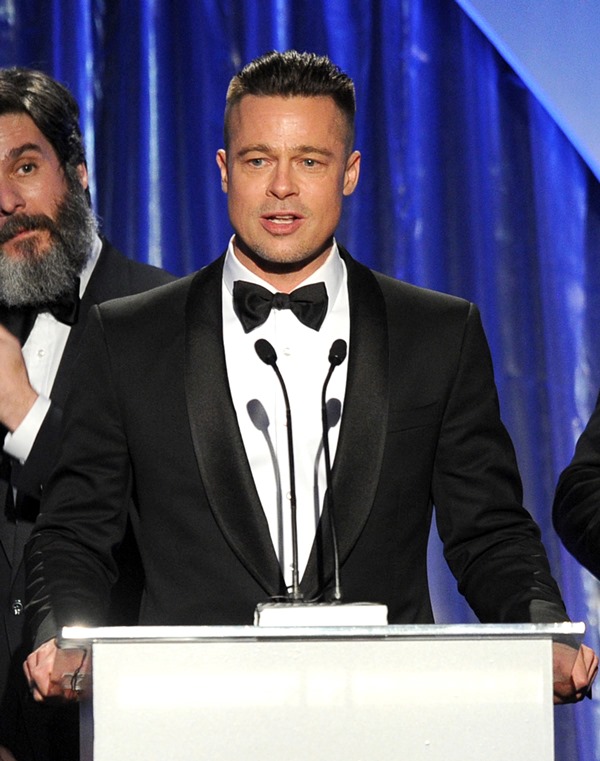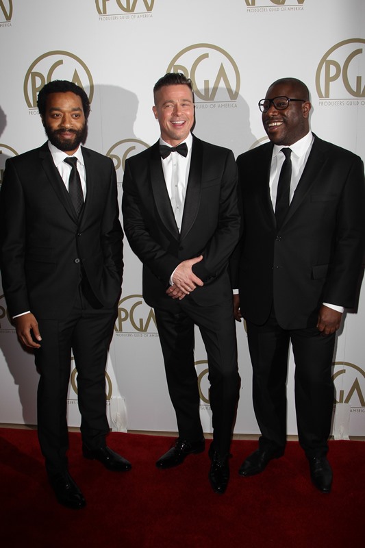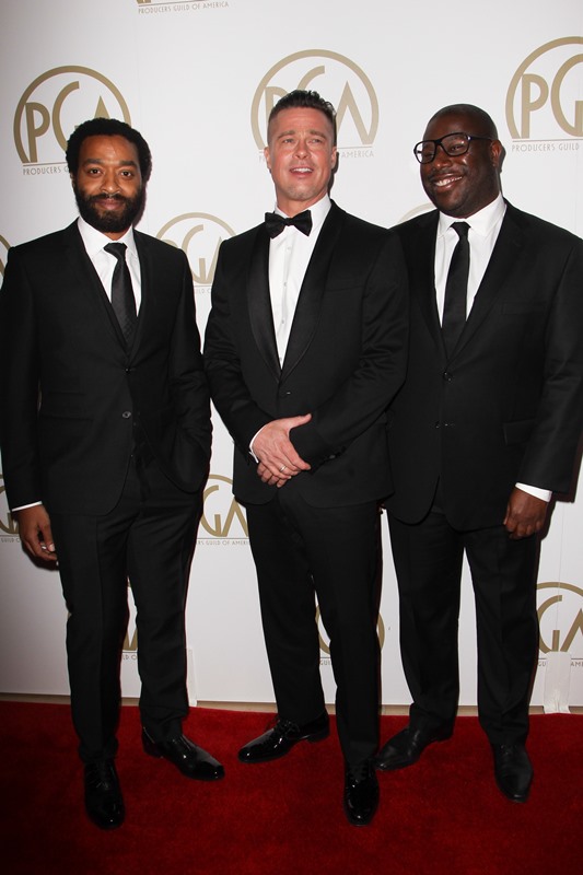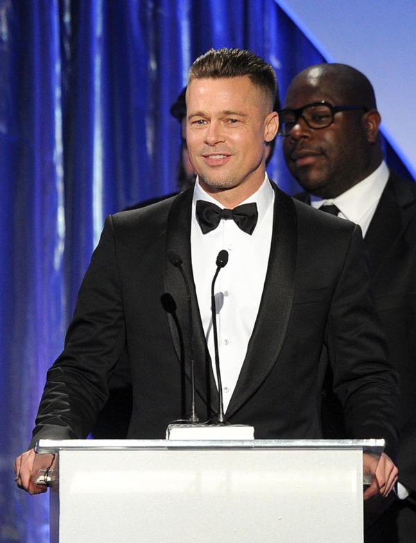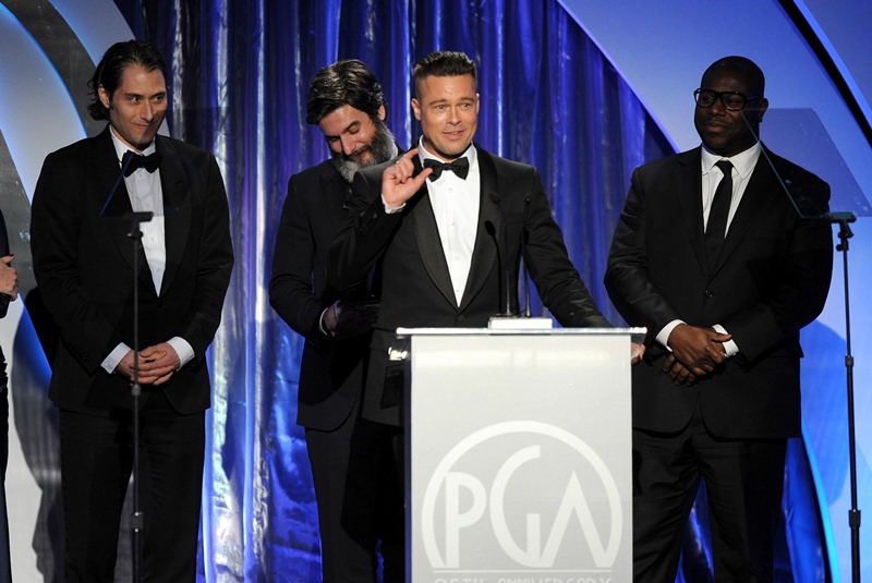 Brad Pitt showed up in LA on Friday. He attended the SAG Awards to support his film 12 Years A Slave on Saturday. It was the surging American Hustle that took home the Best Ensemble Award that night. Last night, however, at the Producers Guild Awards, an unprecedented tie: 12 Years A Slave and Gravity both won Best Picture. It’s an important win for both films going into heavy campaign season. And 12 Years definitely needed it. 12 Years needed Brad Pitt to get to work.