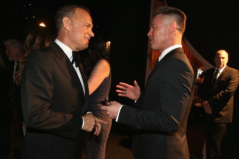 And for 48 hours, he worked. He worked the room at the SAGs, catching up with old friends – Matt Damon, Julia Roberts, Tom Hanks, Jerry Weintraub. He worked at the PGAs up on stage, testing out what might be an Oscar speech. Might. The Producers Guild tie officially confirms that this race is tighter than it’s been in a long time, maybe ever. Which means that the right work can make the right difference. It means that Brad Pitt can do more. Brange can do more. Brange needs to do more.