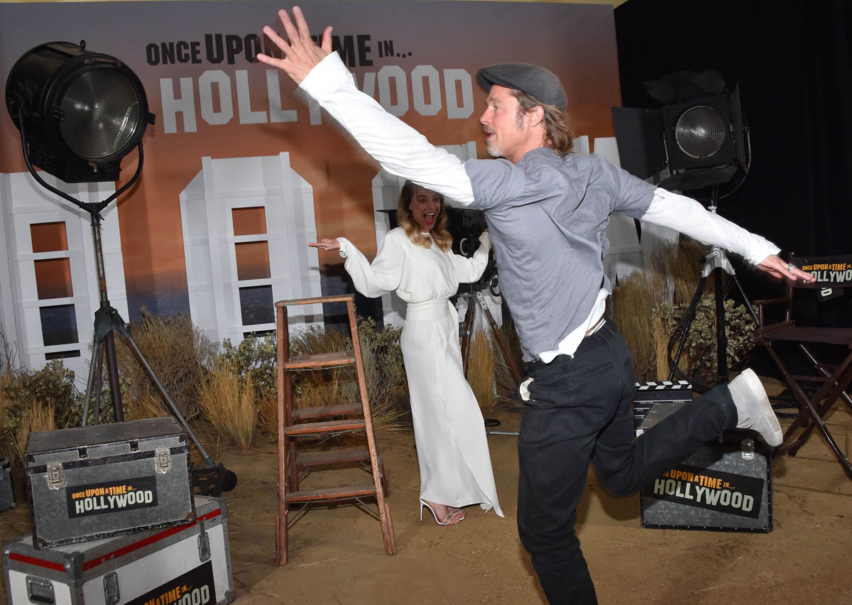 Among the four of them, it was Brad who was the goof in front of the press, at one point photobombing Margot Robbie with a leap across the shot. Brad is generally pretty loose and relaxed but it’s not like he’s George Clooney either with the jokes and the pranks. Then again, nobody takes themselves as seriously as Leonardo DiCaprio at these things. And next to Leo, Brad is practically a comedian. And youthful. That may have been unintentional but being that he’s a decade older, it’s Leo who feels more like the humourless uncle here. Even the pose, with Leo seated and Brad standing, seems to support that.