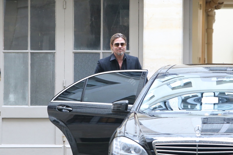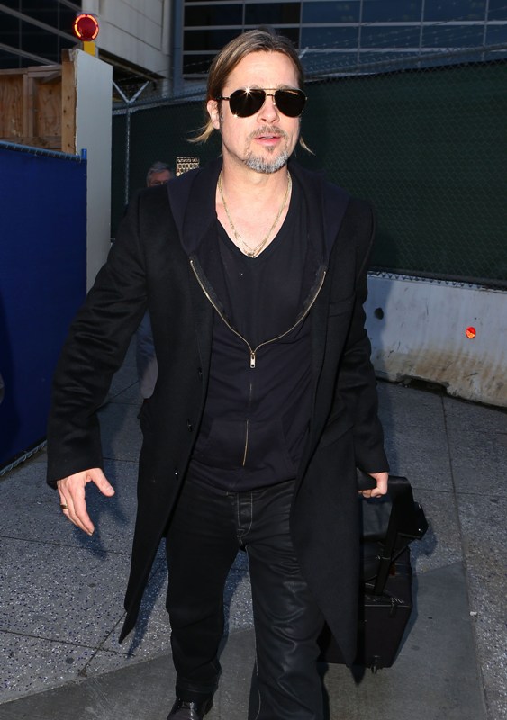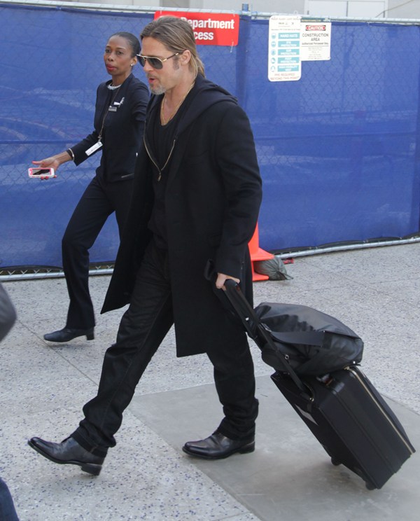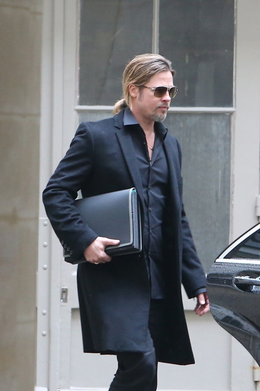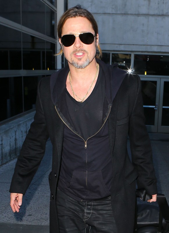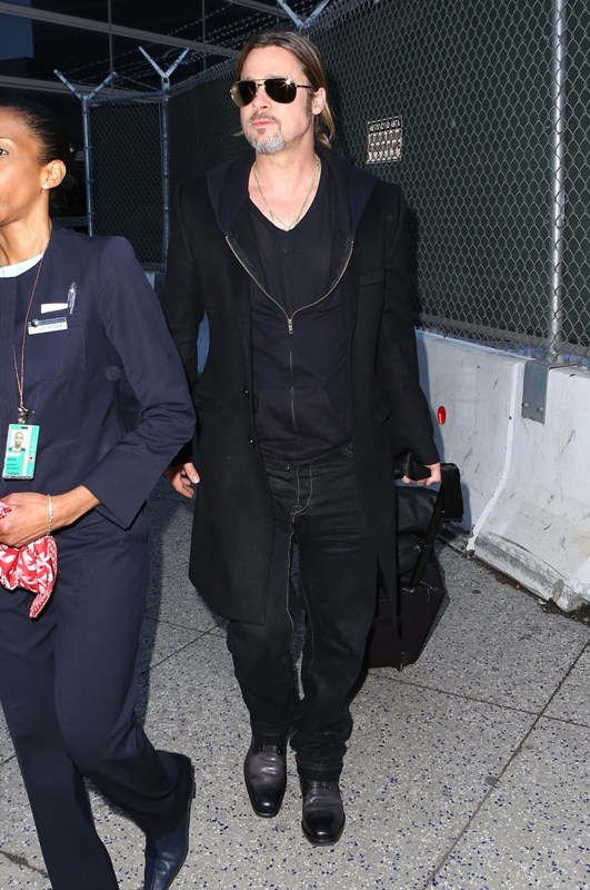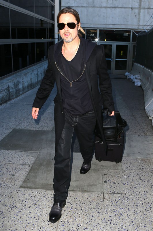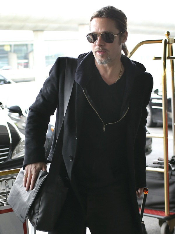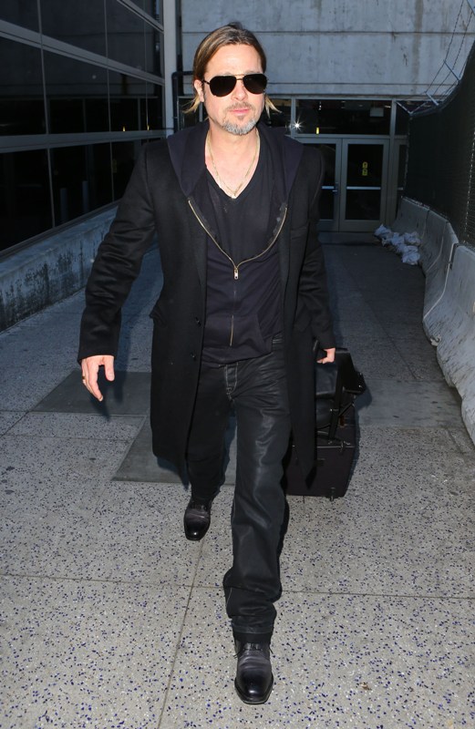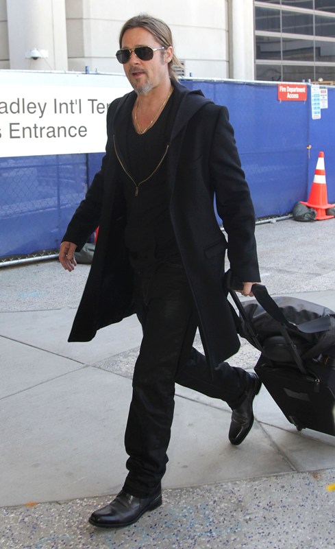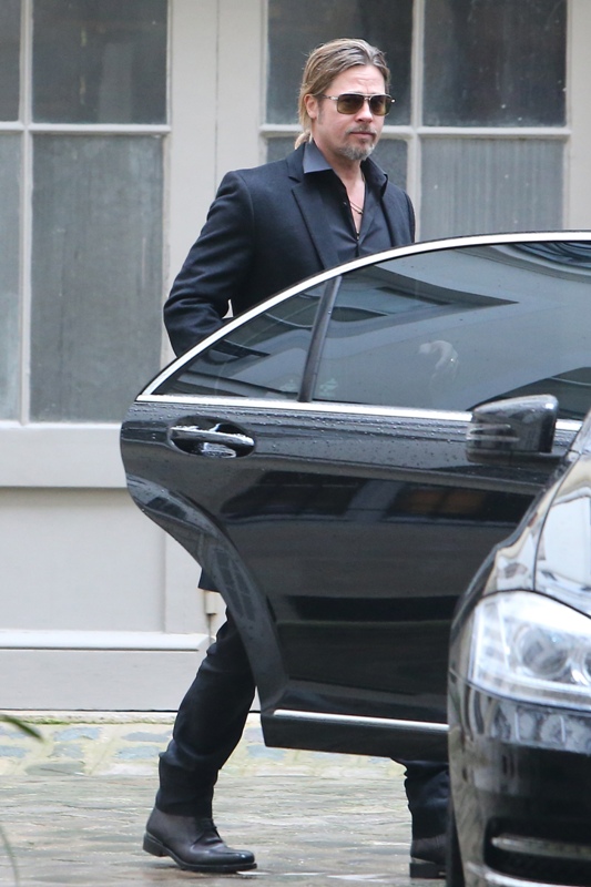 Is it just me, because when I first saw these shots on Friday, I thought, maybe, he had a little Carb Face happening, for the first time, like ever. As it is with his women, Brad Pitt has always been spare. He doesn’t come off that way in film but in person, this is a lean, lean man. Which is why his clothes hang off him so well. His face seems fuller here though, non? He turns 50 at the end of the year. It even catches up to Brad Pitt.
