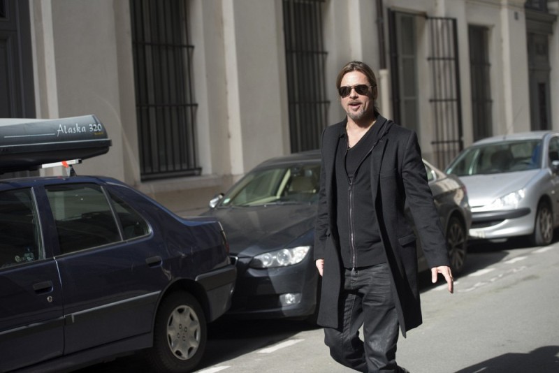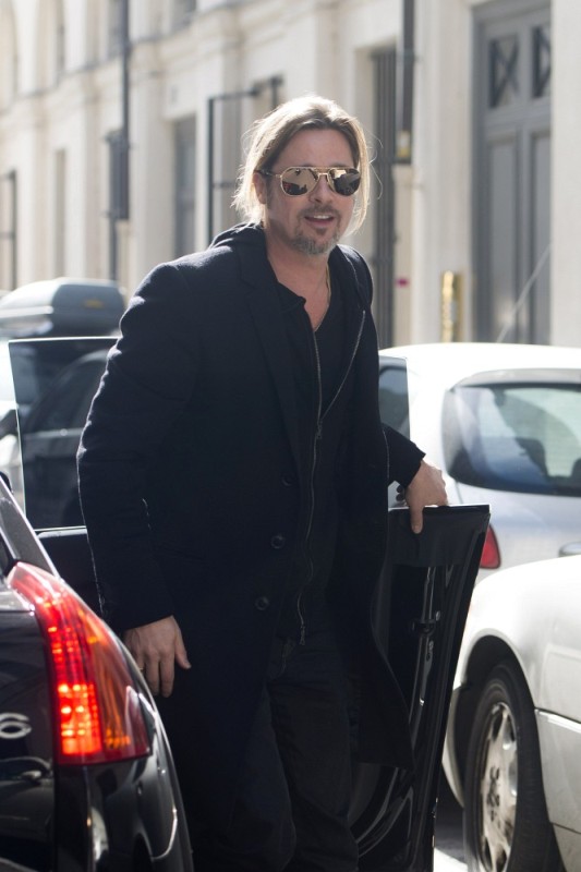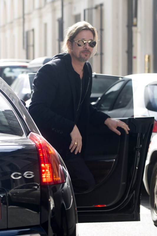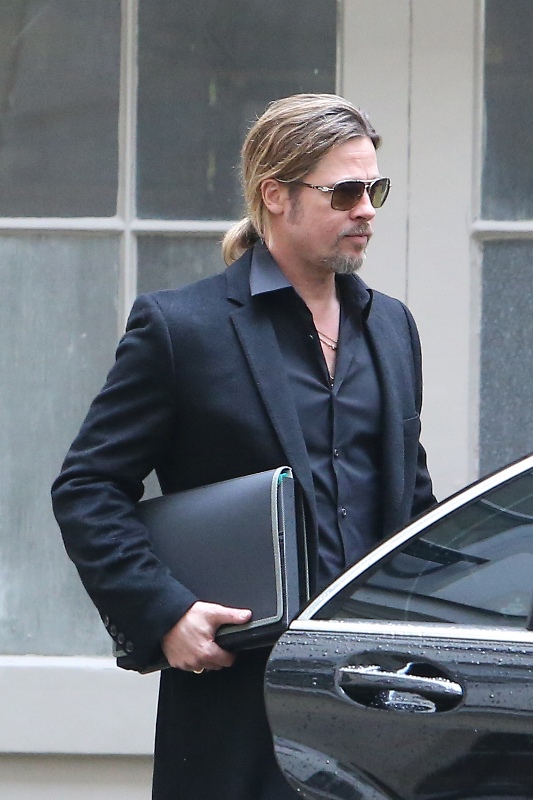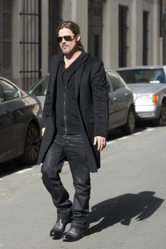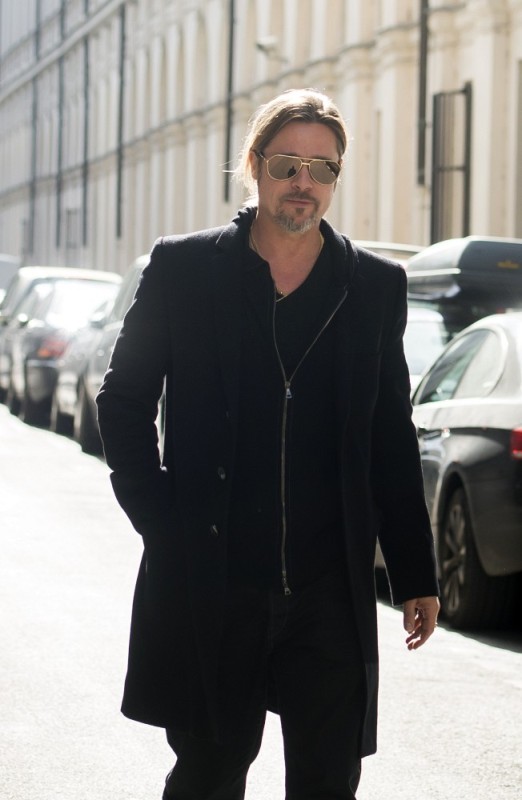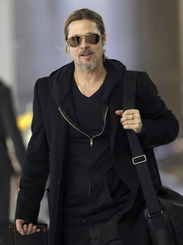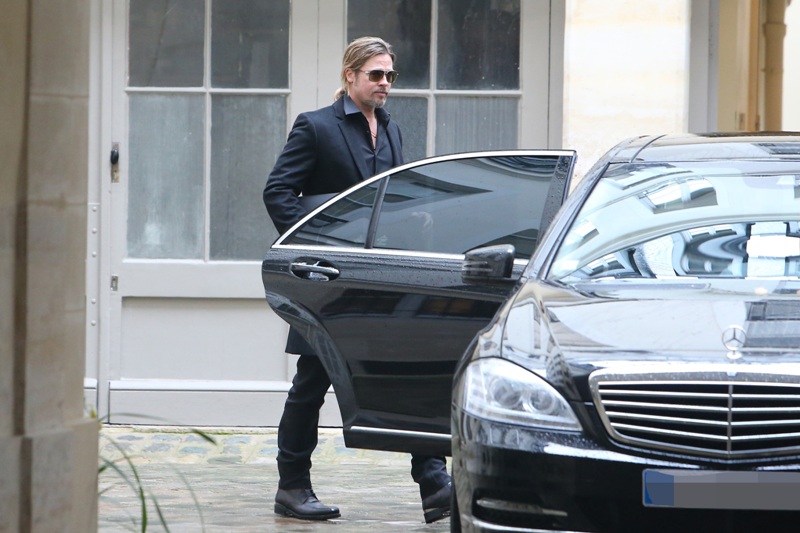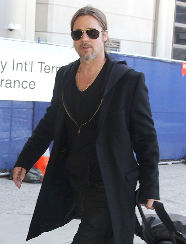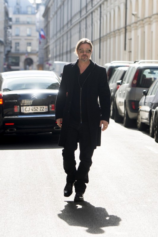 Is it just me, because when I first saw these shots on Friday, I thought, maybe, he had a little Carb Face happening, for the first time, like ever. As it is with his women, Brad Pitt has always been spare. He doesn’t come off that way in film but in person, this is a lean, lean man. Which is why his clothes hang off him so well. His face seems fuller here though, non? He turns 50 at the end of the year. It even catches up to Brad Pitt.