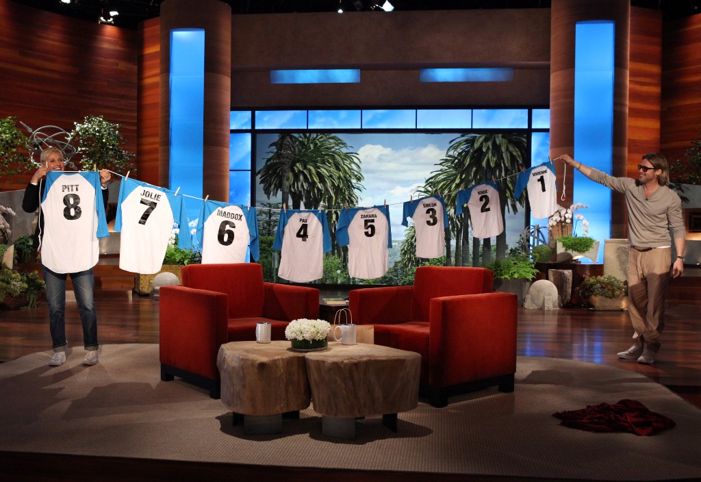Ellen: Portia and I have been together for six years and you and Angie have been together about the same amount of time. I just think wow, Maddox and Pax and Zahra and Buff and Hensman and…Tito. There is so many of them. I don’t know how you balance? There’s got to be one really, really well behaved one. Who’s your favorite?