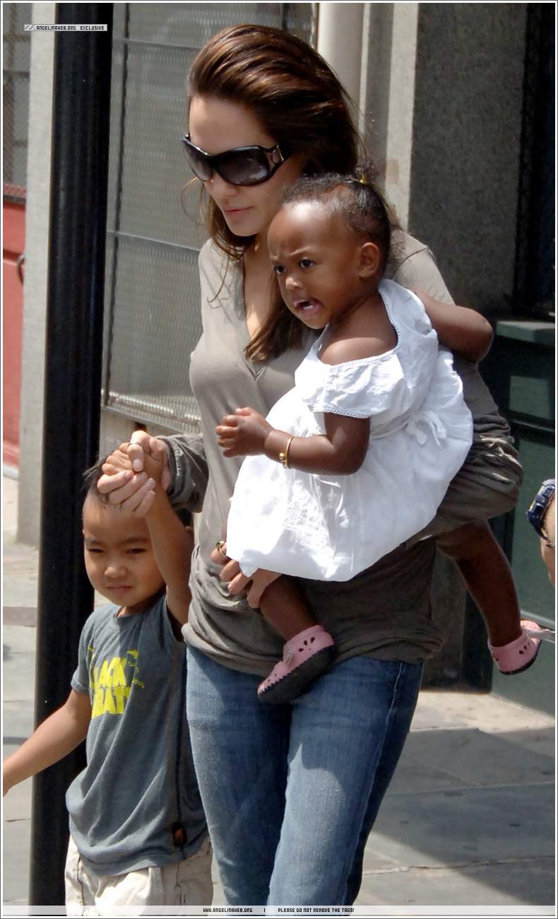 A few days ago, there was a rumour, now debunked, that Jennifer Aniston was to endorse Nike for a new campaign, with her earnings being directed towards cancer research. Shortly thereafter, new photos of her surfaced - she really has the best hair, doesn"t she? - seen leaving a recording studio, prompting many to assume that she was doing voice work for the ads. Now that the report has been denied, people are wondering…what exactly is she recording? Could Jen be pulling a Gwyneth and givin" her pipes a go? Hmmm…much as I try, I really don"t give a sh*t. What I do give a sh*t about is the Family. And the Family is back on philanthropy, showing up in New Orleans today, the couple in tact, the kids (minus Shiloh, said to be at the hotel) along for the ride, to commemorate the 1 year anniversary of Hurricane Katrina. The photos are forthcoming, the magazines are trying to lock them up right now, but you can have a glance by clicking on this link. As you can see, Angelina looks gorgeous. My favourite though is the one where Brad appears to be packing up Madd"s books. LOVE. You"ll also note that a few rarely seen Clooney pics are the at the bottom of the page. After all the Brad/Angie/Jon Voight hoopla from that gallery event last week, seems George was a tad overlooked. And shame too! Holy quiveration loin mashing nation! Photos from https://www.angelinaweb.org/index.php