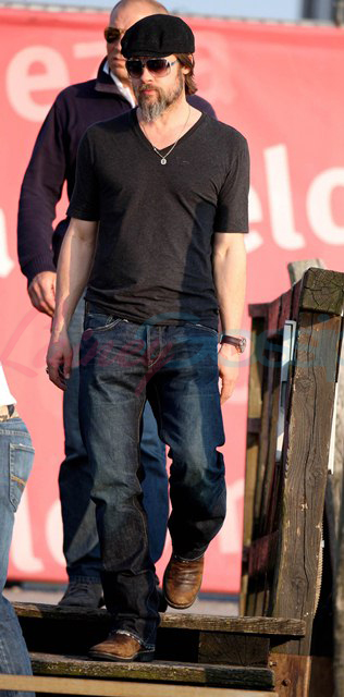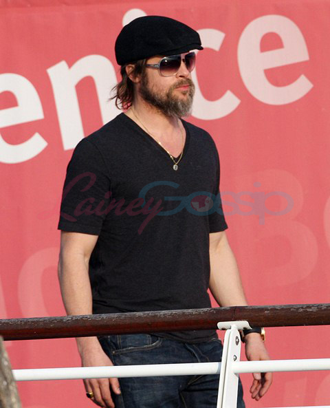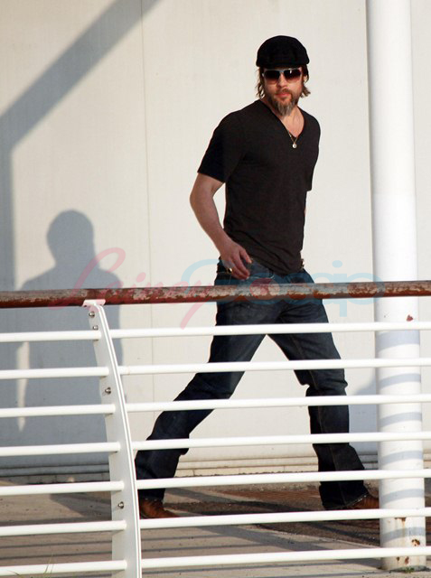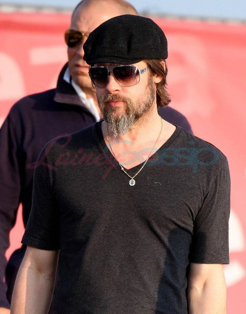 As for Brad, he flew in by private jet. Apparently was in London and France on a short haul on business before returning to rejoin his brood. Everyone is still hoping, even though the possibility is remote at best, that Brad will be back at Cannes with Tree of Life as a late entry. Slim chances. Am crushed. No Pitt Porn at the festival this year.