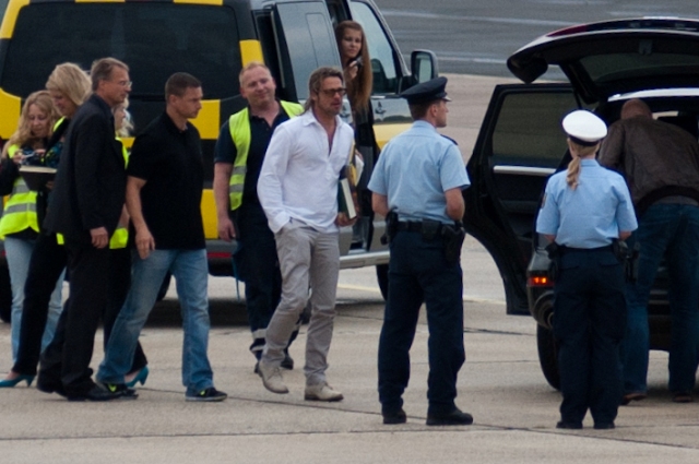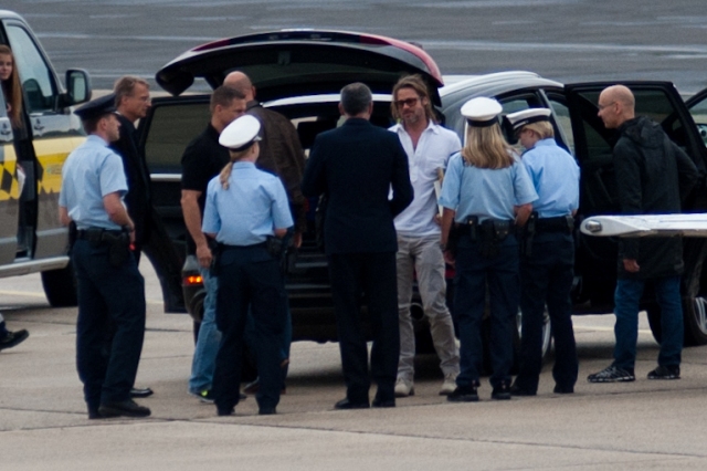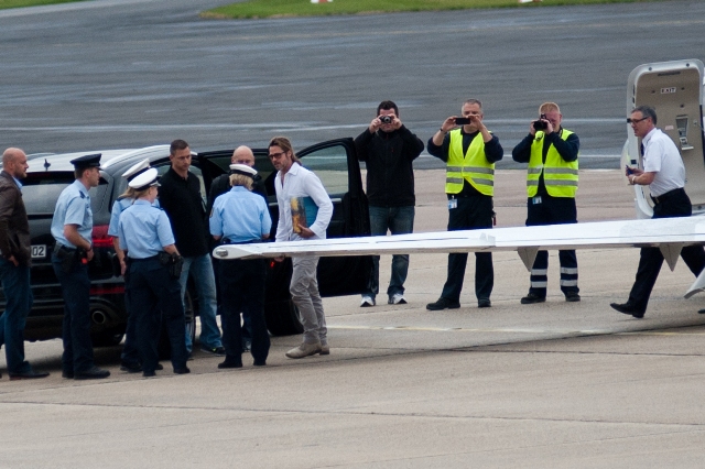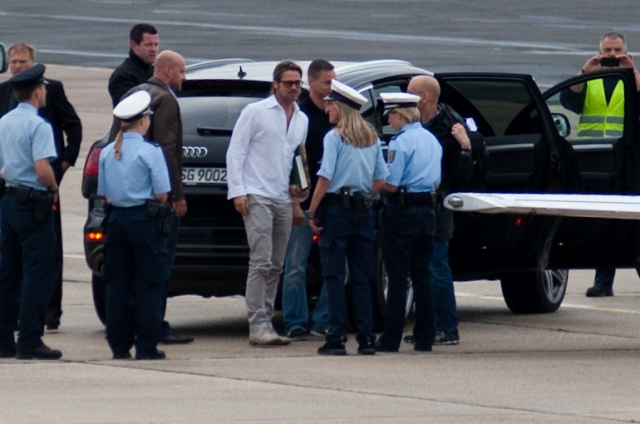 Brad Pitt left Germany today after a visit to Documenta. As mentioned yesterday, it’s an art exhibit that only happens every 5 years. A big deal. Not sure if he bought anything. Remember a few years ago when he dropped over a million for a Banksy?