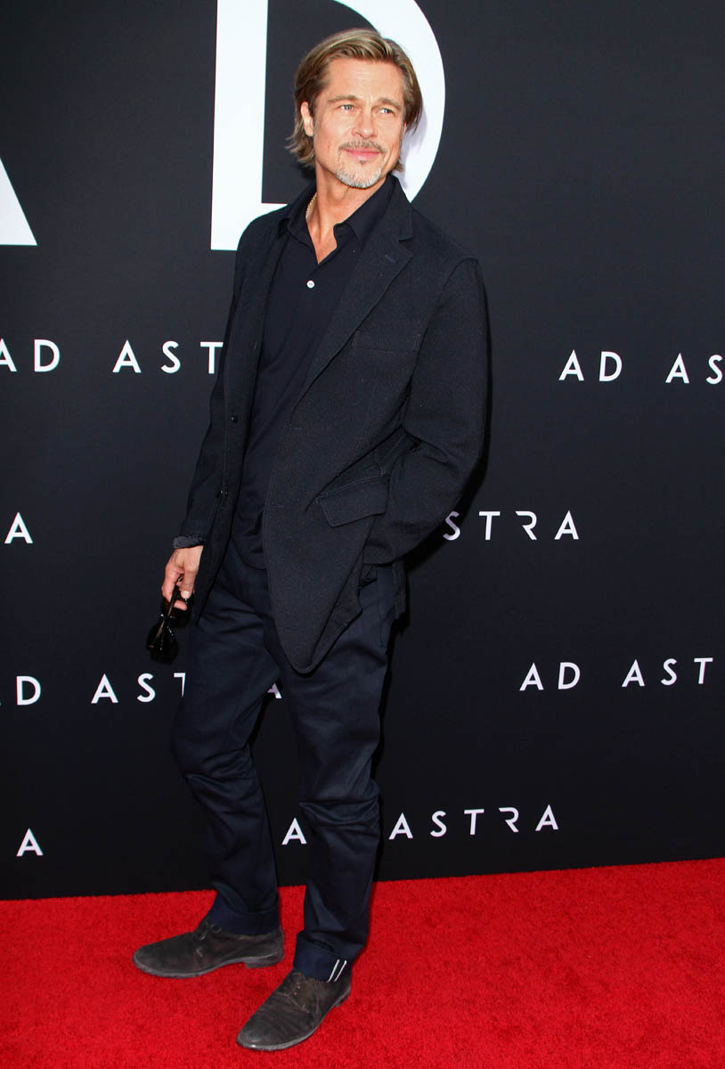 Brad Pitt was in Hollywood last night for the premiere of Ad Astra. As we’ve seen the last couple of weeks, he has been doing the most to promote this film. More press than he’s done in a long, long time. And all kinds of press, from multiple magazine interviews, to red carpet to interviews, and a junket. Seems like it was a pretty standard junket too. Any entertainment reporter will tell you, it’s pretty rare to find Brad Pitt this accessible. But he’s out here making sure we know about his film. And don’t confuse that with Oscar campaigning, OK? He’s not about that life.