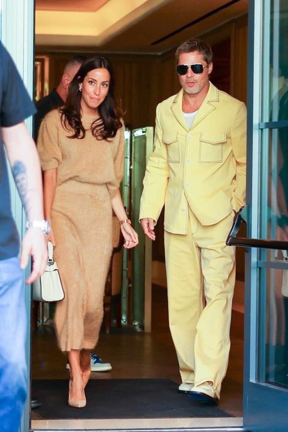 Brad Pitt is in New York, ahead of the Apple TV+ release of Wolfs, his new film with George Clooney that received aggressively medium reviews coming out of Venice. That premiere is happening soon and these days, since he and Ines de Ramon have hard launched their relationship, she is with him often, she is with him in all the new pap shots.