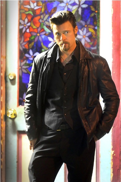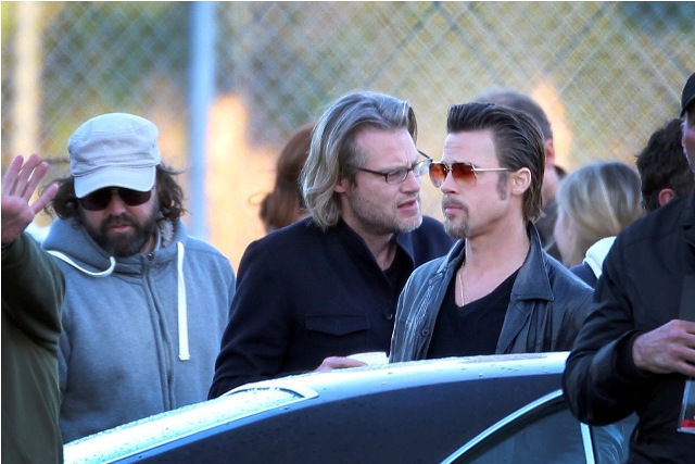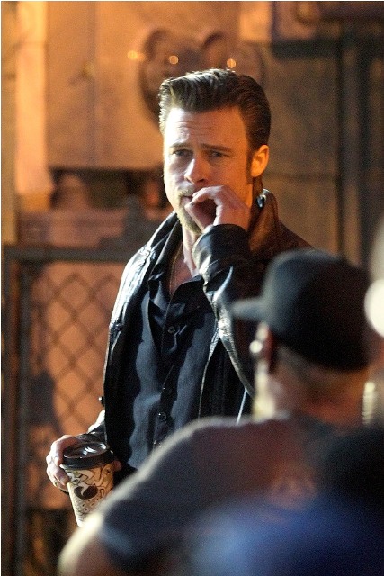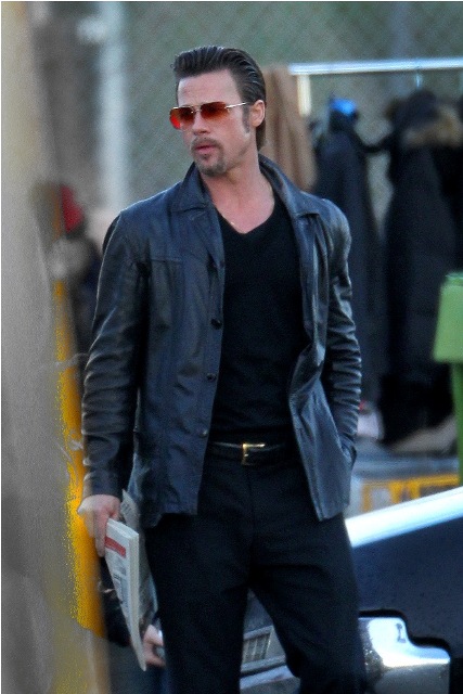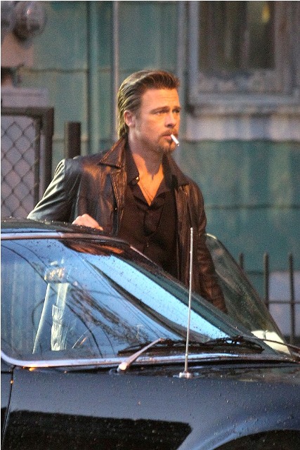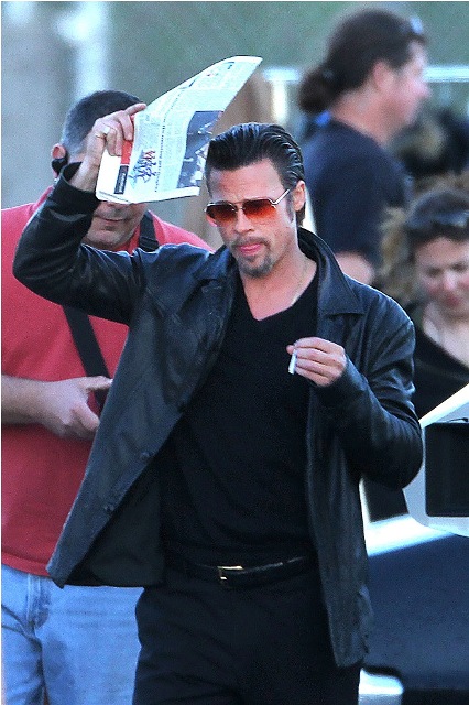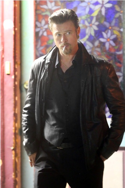 These are shots of Brad Pitt shooting Cogan’s Trade in New Orleans on Friday and Saturday. Look at his pretty boy pose in the series of photos taken at night. It’s the way he posed in the early part of his career. Before the days when you couldn’t tell Brad Pitt what to do.