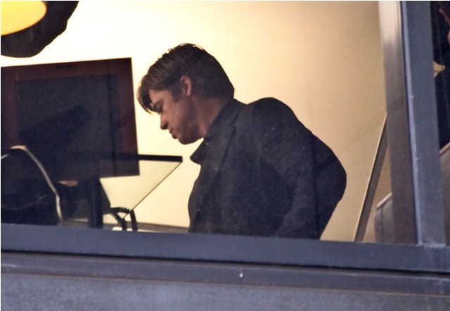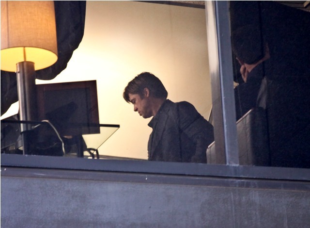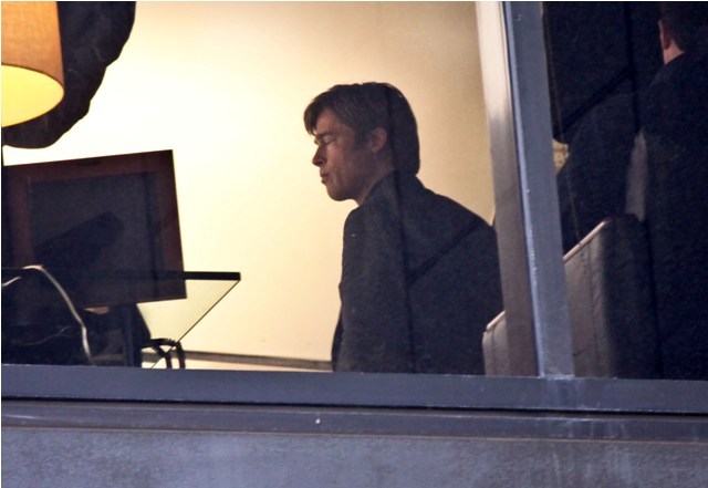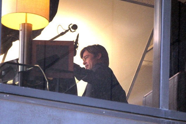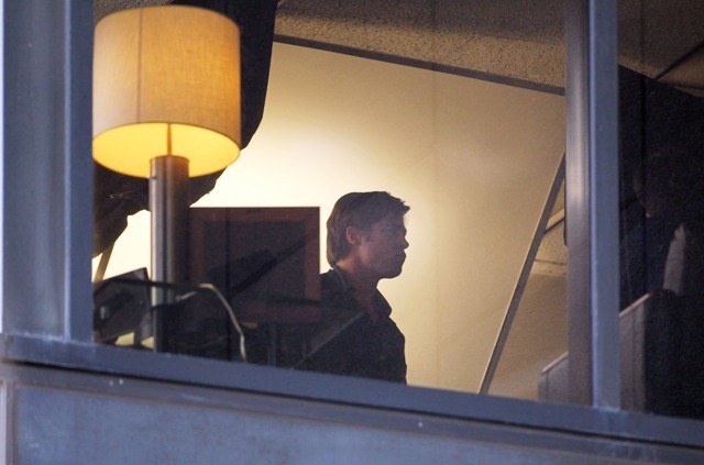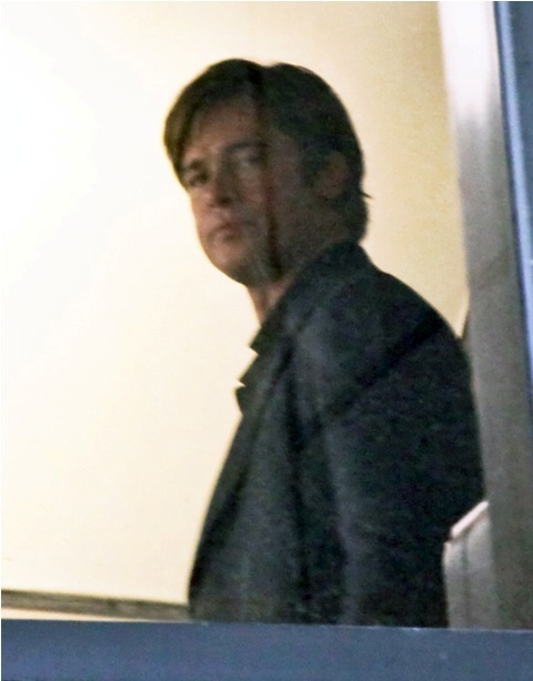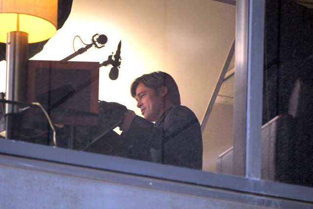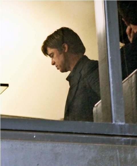 Angelina Jolie wrapped on a movie with Johnny Depp, now it’s time for Brad Pitt to go to work while she hangs back with the children. Work means no nasty beard. And here’s Brad on the set of Moneyball the other day with that sh-t off his face. SO.Much.Hotter.