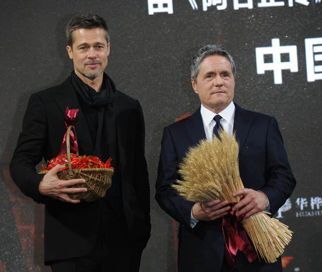 Brad Pitt is in China with Brad Grey, the head of Paramount, the studio distributing Allied. Brad and Brad have been friends a long time. They, along with Jennifer Aniston, started Plan B together and moved it to Paramount after Brad and Jen broke up. It’s a tricky time right now for Brad Grey as there has been all kinds of uncertainty about the future of Paramount in the light of the mess that’s happening around Sumner Redstone. Deadline covered the situation a few weeks ago, reporting that Brad Grey has “decided to make a fight for his corporate survival”. I wonder then if this trip is part of that fight. If hustling for Chinese money is part of that fight. As I posted last week, The Hollywood Reporter dedicated an entire issue earlier this month to Hollywood’s courtship of Chinese money. So Brad Grey accompanying Brad Pitt to China is likely more than just business for Allied. And there’s no better way to glamourise investors than to bring along one of your best friends who just happens to be one of the biggest movie stars in the world.