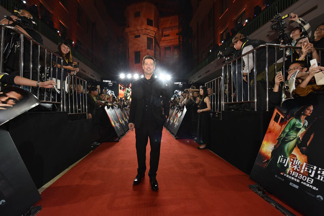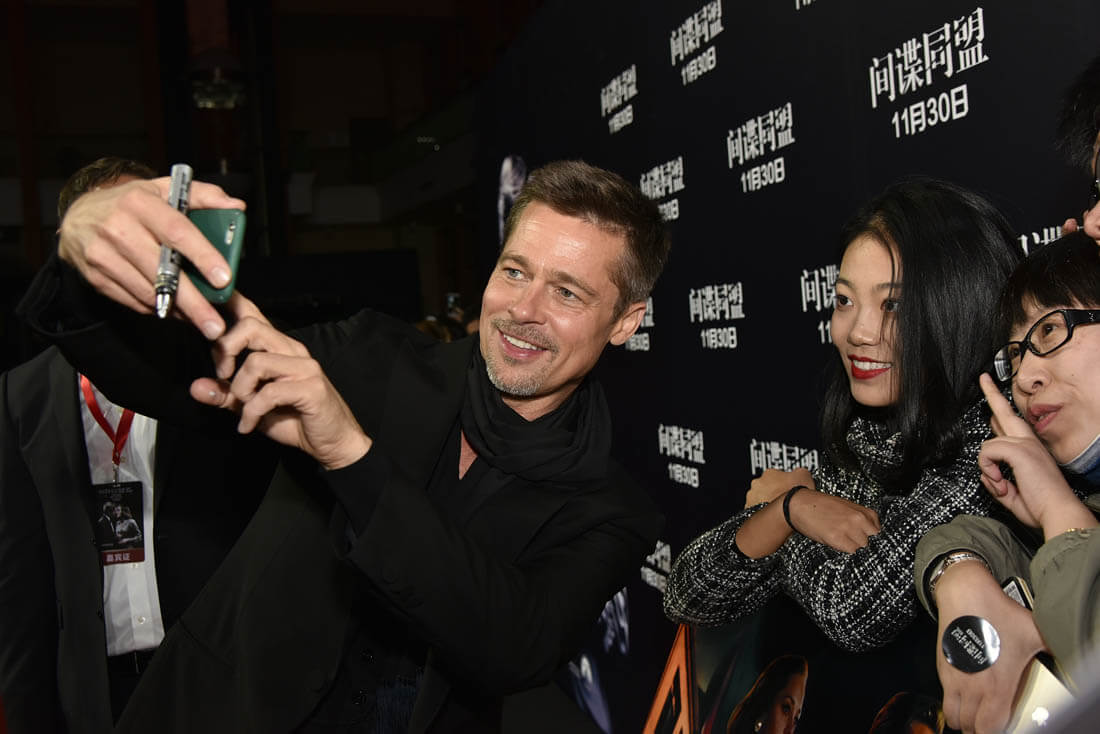 Brad Pitt hasn’t promoted a movie in China since Seven Years In Tibet because, supposedly, the Chinese government wasn’t happy about how the country was portrayed. Here he is yesterday in Shanghai on press tour for Allied, all is forgiven. Time to get that Chinese money. As you know, Hollywood is depending more and more heavily on the Chinese audience and the Chinese investor.