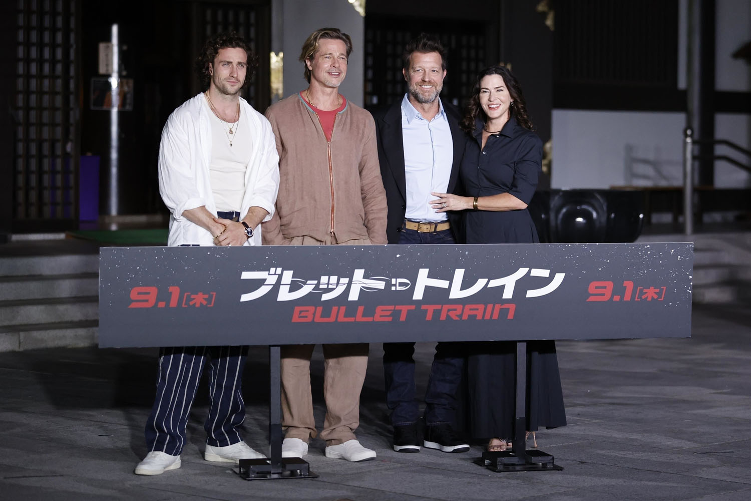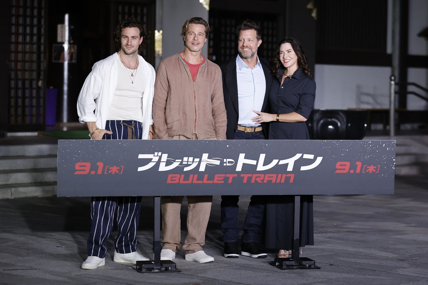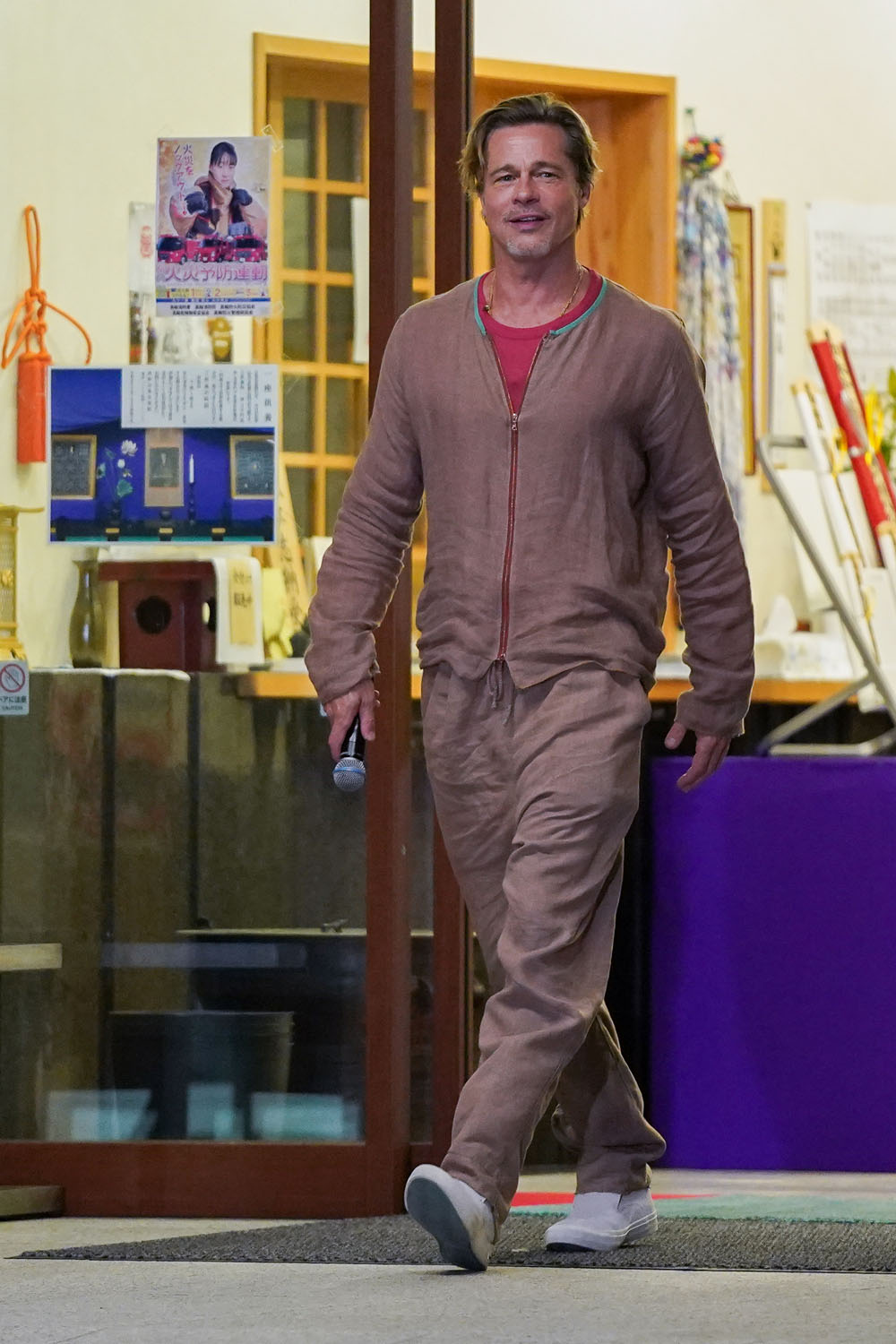 His warm reception in Japan no doubt also helps with the negative headlines that have been following Brad around over the last week, ever since details emerged from the FBI investigation into his violence on that private plane with Angelina Jolie and their six children. Yesterday Brad, Aaron Taylor-Johnson, director David Leitch, and other members of the Bullet Train team were at Kōyasan Tokyo Betsuin Buddhist Temple to promote the movie. Brad meditated with the monks and afterwards shared a few remarks.