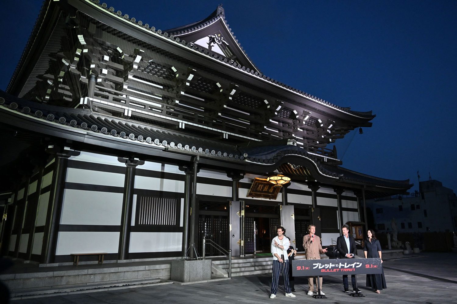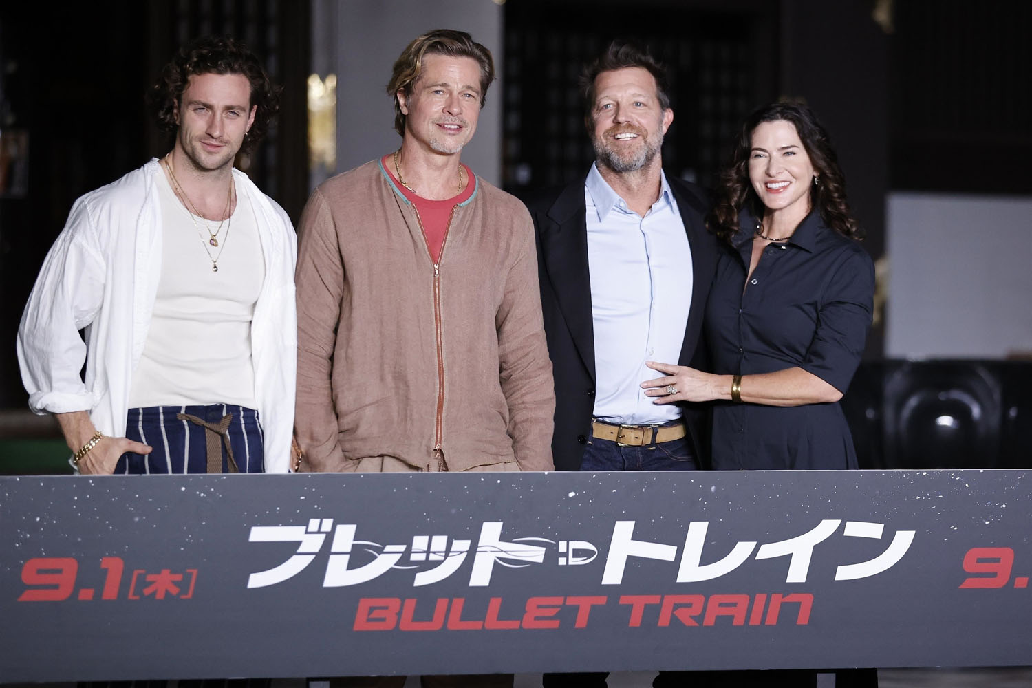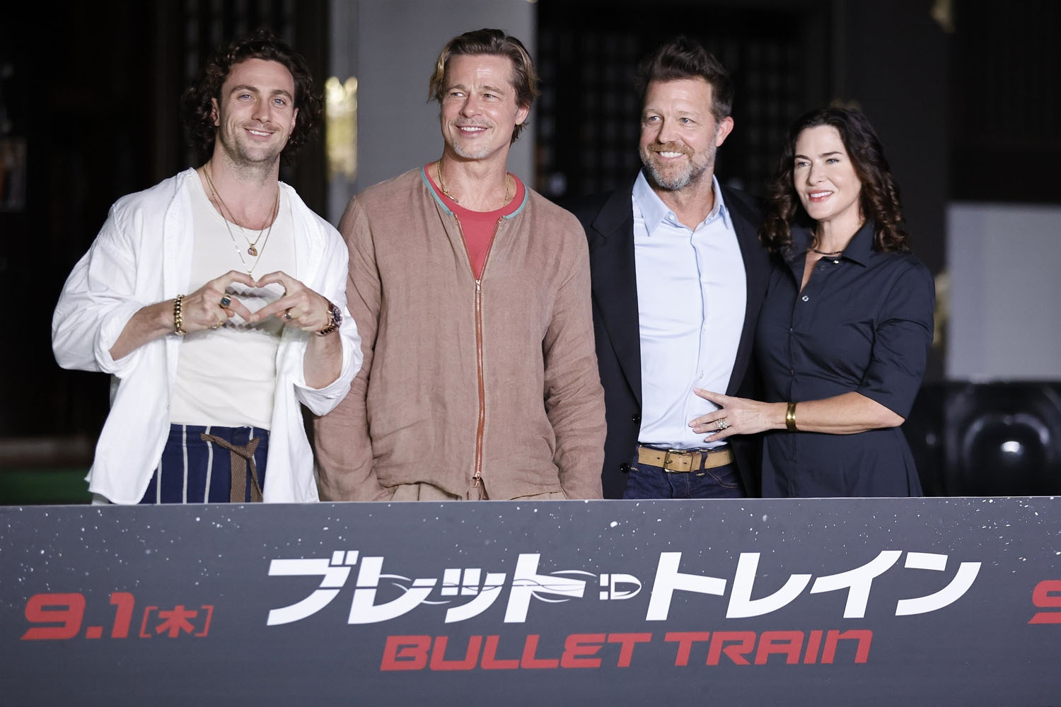 His warm reception in Japan no doubt also helps with the negative headlines that have been following Brad around over the last week, ever since details emerged from the FBI investigation into his violence on that private plane with Angelina Jolie and their six children. Yesterday Brad, Aaron Taylor-Johnson, director David Leitch, and other members of the Bullet Train team were at Kōyasan Tokyo Betsuin Buddhist Temple to promote the movie. Brad meditated with the monks and afterwards shared a few remarks.