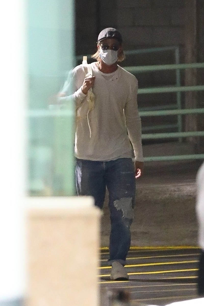 In other Brad news, here are some shots of him in LA at his office with a mask on. Which is my segue to bringing up a clip that resurfaced a few weeks when some Americans were resistant to mask-wearing (and still are). It happened when Brad was in Japan promoting Ad Astra last year and he talks about seeing people in Asia wearing masks. In case you’re unfamiliar, wearing a mask is no thing across East Asia and has been since the mid-2000s. Brad’s comments come around the 8 minute mark (source):