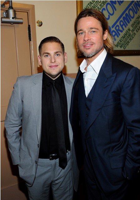 Click here for the full Parade piece, again, all in service of Moneyball, opening this weekend. Brad and the cast were in Oakland for the premiere last night. As I mentioned in yesterday’s post, the Jolie did not join him, electing to stay behind in the UK to look after all their children.