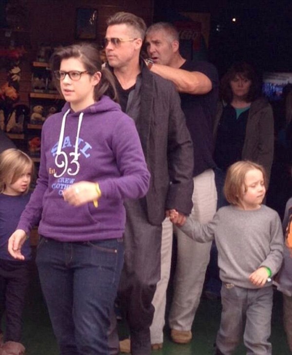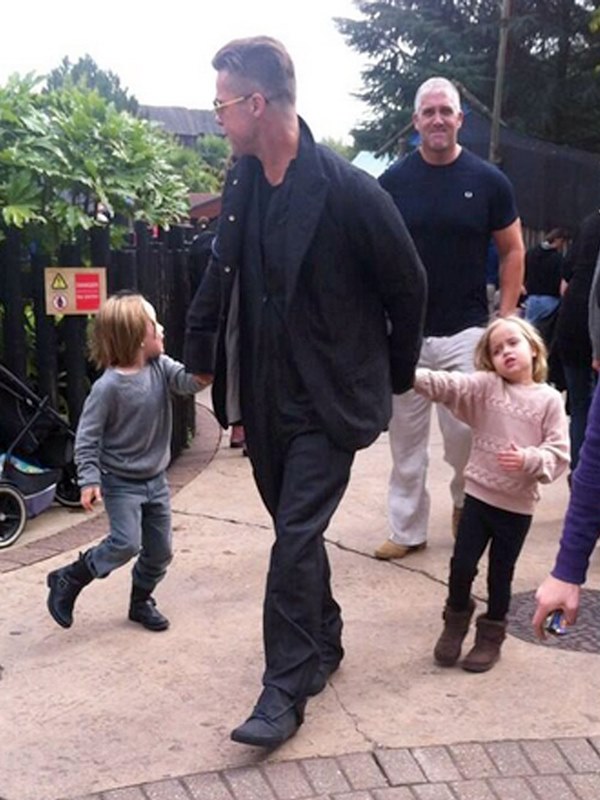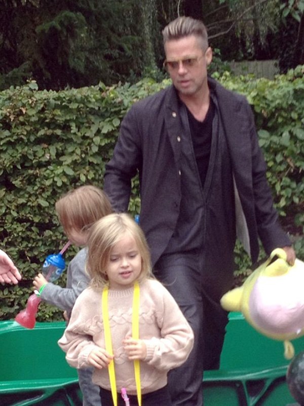 Brad Pitt took his twins, Vivienne and Knox, to Legoland in England this weekend. I love his hair like this. It’s hot. So much hotter. And younger too.