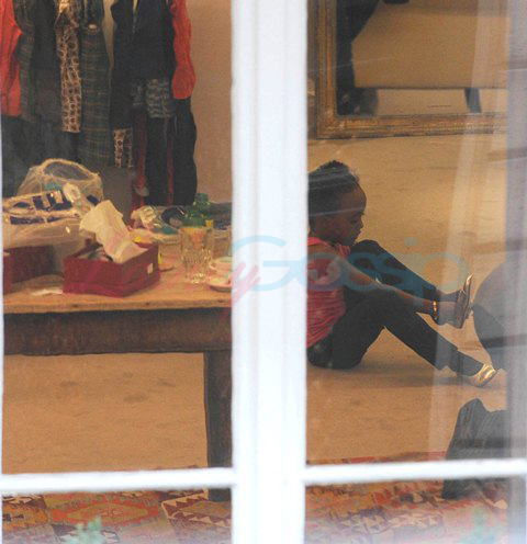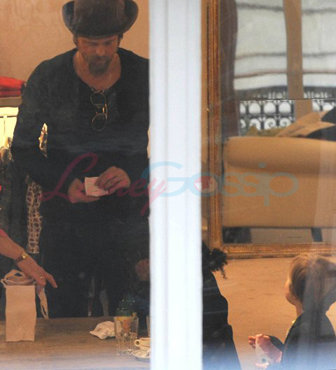 Brad took the girls shopping while Angelina was shooting on set yesterday. Miss Zahara appears to be developing an early shoe fetish. That’s my girl.