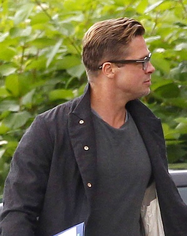 We had a glimpse of Brad Pitt’s short hair last week – click here for a refresher. Now a better look. And it looks SO MUCH BETTER.