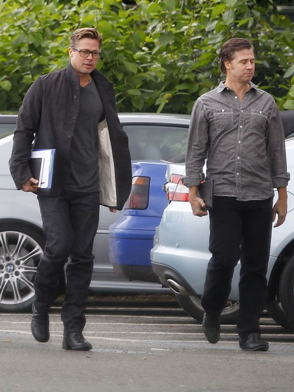 Brad’s in London shooting Fury. He was photographed on Saturday arriving on set in glasses and no cap. It’s a major improvement …although it hasn’t deflated his cheeks. Like I said, his body is the same, and so is his neck so that “fluffiness”, as my ma the Chinese Squawking Chicken would say, is less about weight fight than it is about, ahem, age fight. Is age the great Hollywood equalizer? Hardly. Men don’t have the age challenge women do when it comes to roles. Still, why don’t we start asking them about how it is to age in the industry the way we do women?