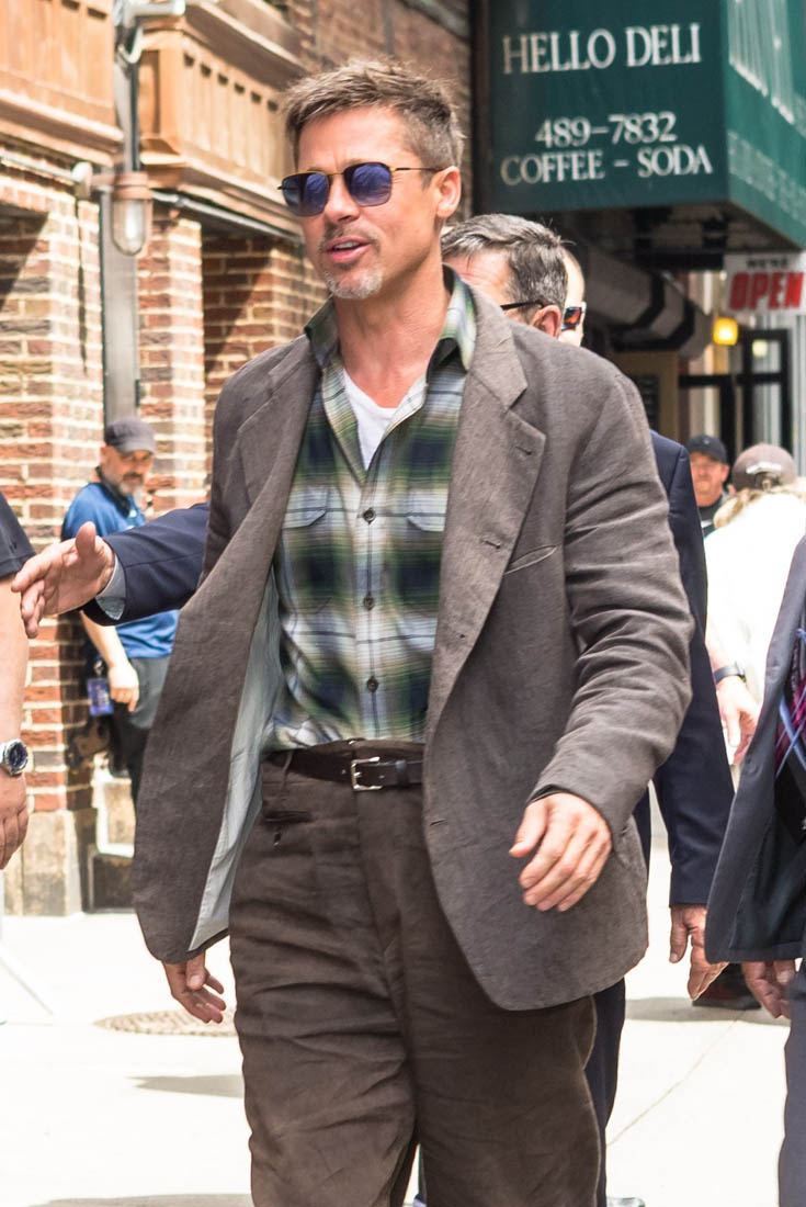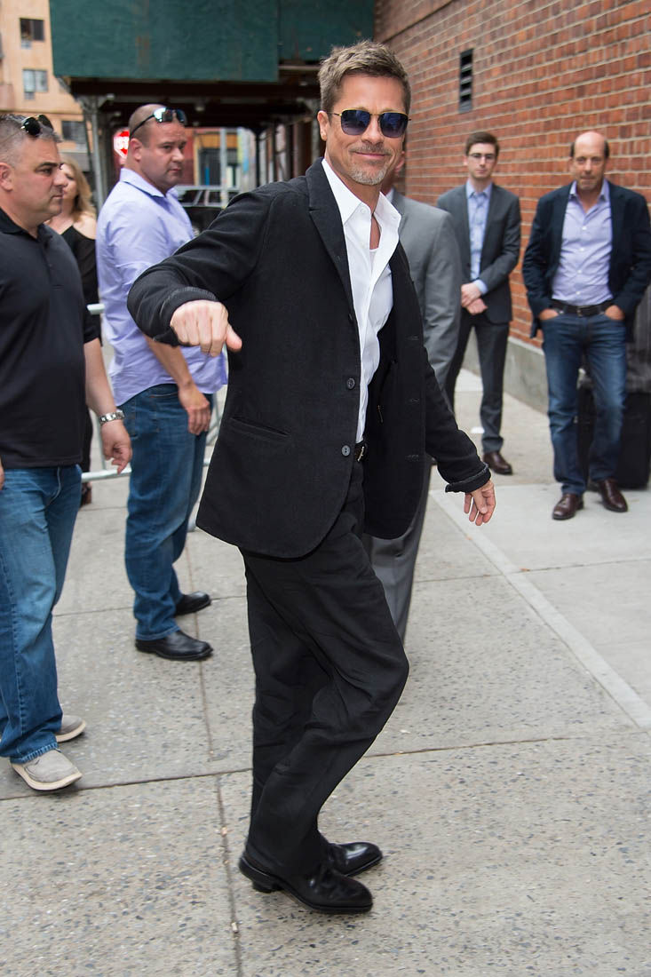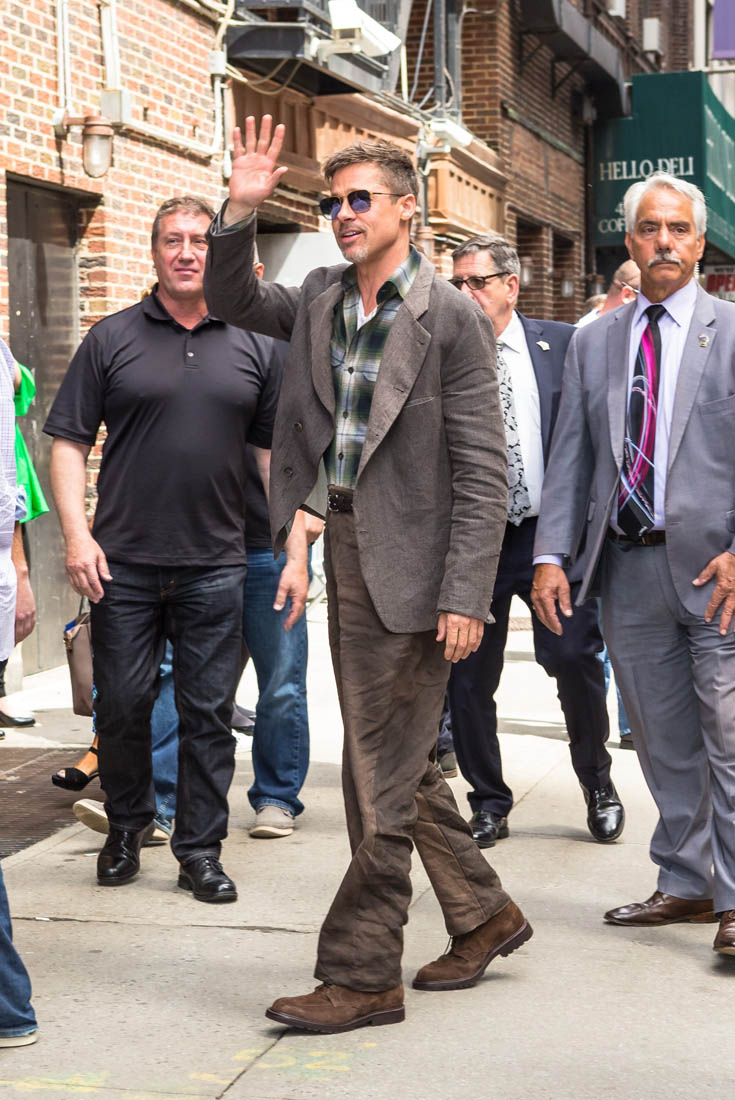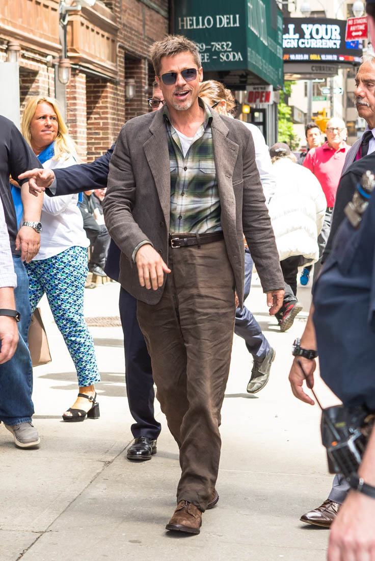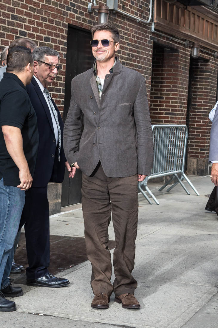 As for Brad’s pants – well they’re noticeably baggier since he’s lost weight and he hasn’t had time to go shopping for a new wardrobe, OK? Brad’s been busy getting lost in his art, working in his soul, and seeing his children when he can. Caring about tailoring his clothes and being fashionable isn’t a priority right now, don’t you get it? And showing up in New York City all tricked out in custom suits and fresh gear doesn’t fit the image.