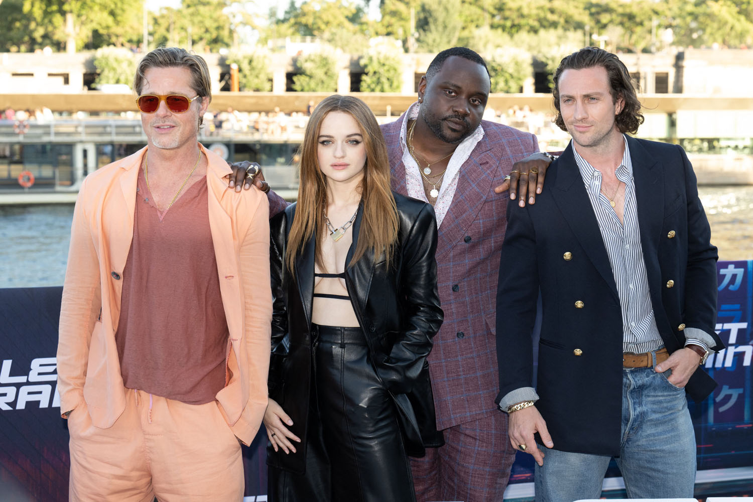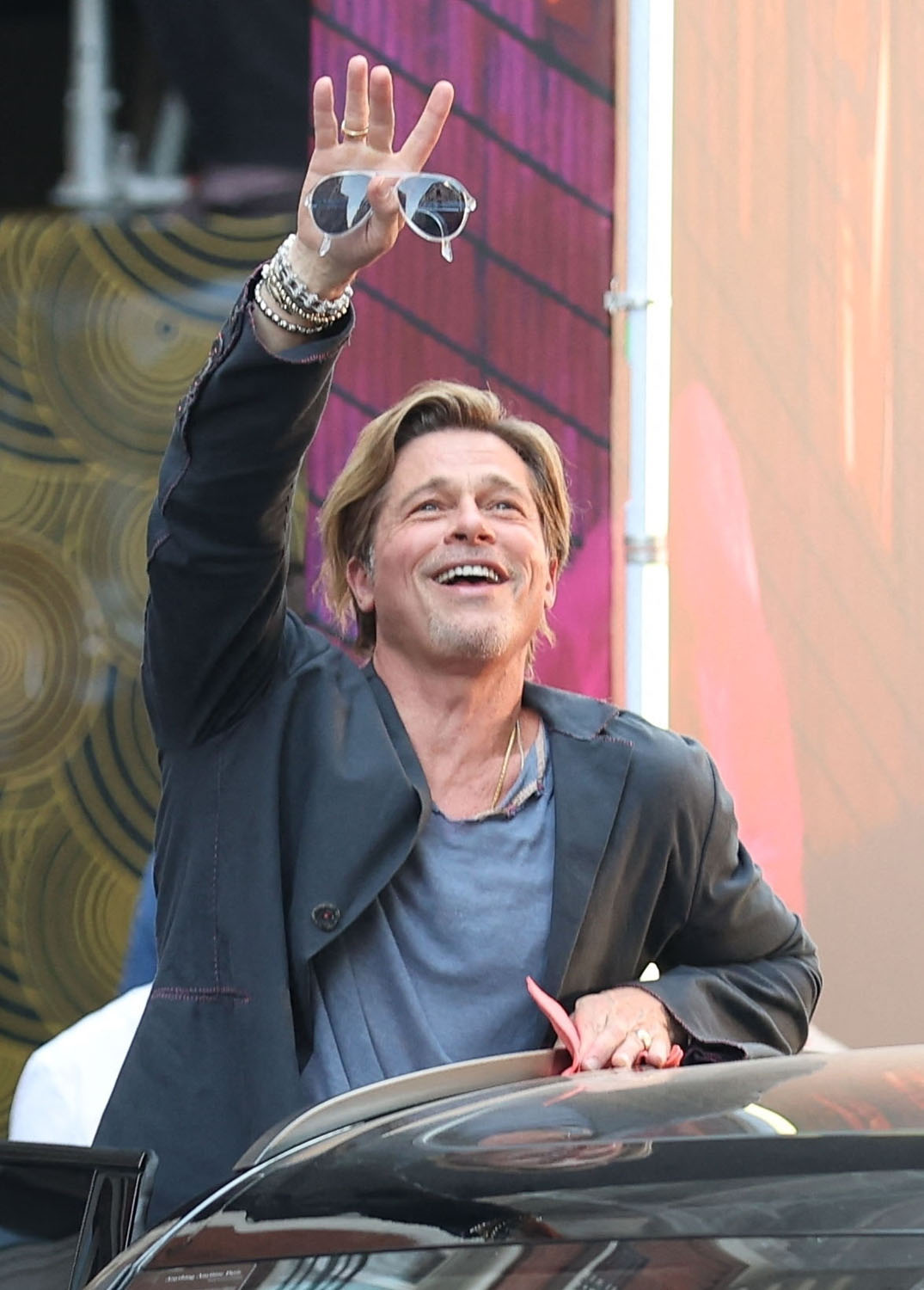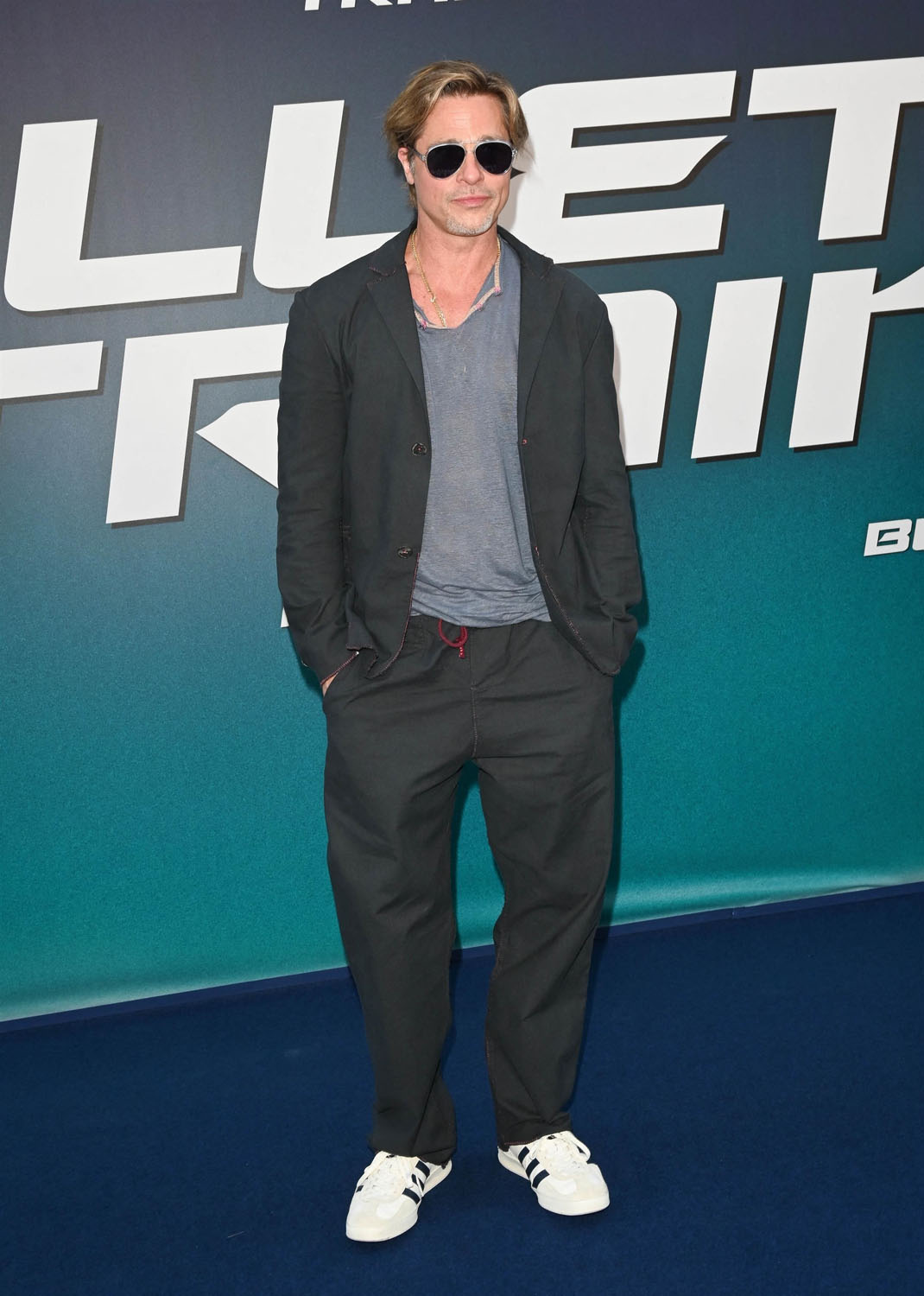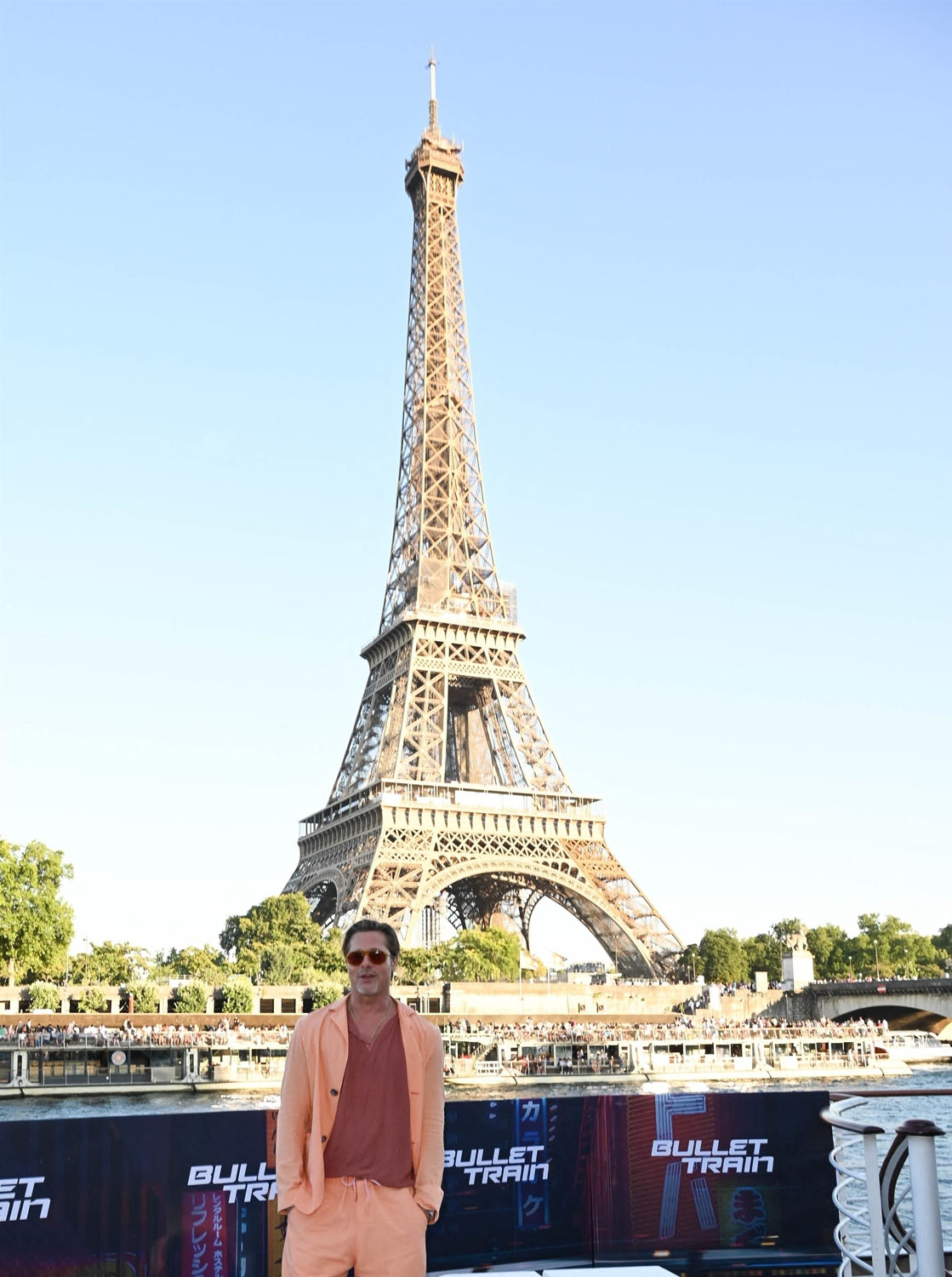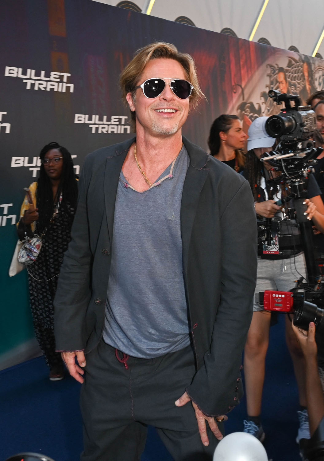 Brad Pitt is currently promoting Bullet Train and the press tour is in Europe right now. On the weekend he showed up in Paris in a peach coloured pantsuit. Today he’s in Berlin and he’s wearing pink. He does look good. He’s cut his hair a bit, he has a tan – he’s bringing the full force of his Brad Pitt-ness to this promotional push. And…that also works as a distraction for his other sh-t.