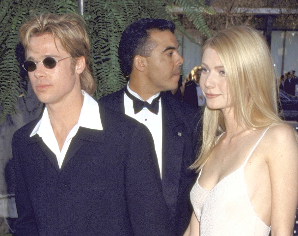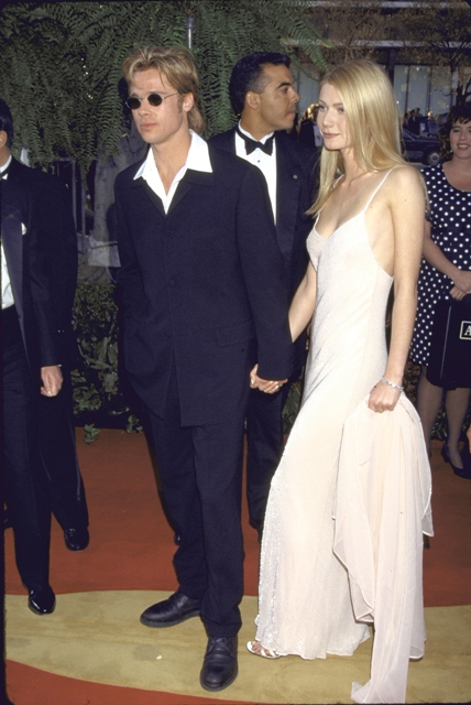 There she is, my Gwyneth, smug as sh-t on the arm of Brad Pitt. Some of you may not have been around, or maybe you just don’t remember, but Brad and Gwyneth together were a Big Deal. Everyone wanted him and everyone wanted to be her. But he made a very poor style choice? It’s a rare misstep.