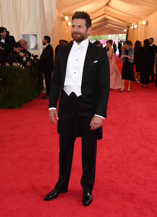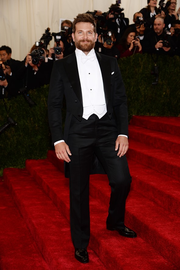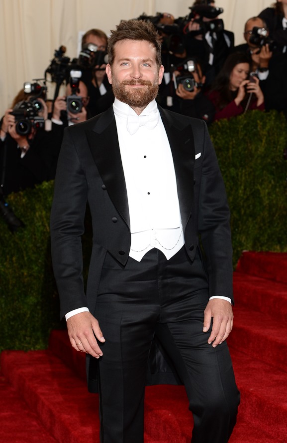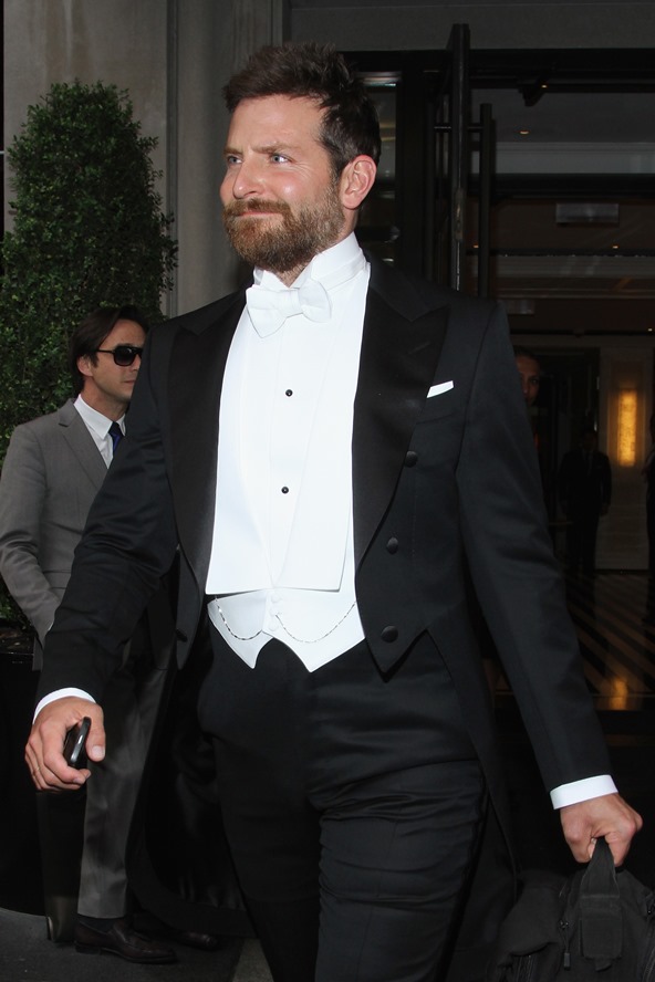 Remember when I said last week that I wasn’t feeling the new Bradley Cooper, all jacked up and thick? Click here for a refresher. He’s put on 40 lbs of muscle for a role and, well, it doesn’t work in a tuxedo. Do you see a neck? Now, for some reason, he reminds me of an older Zac Efron. Their faces share a certain…clammy sheen. Keep an eye on that too. He looks terribly uncomfortable.