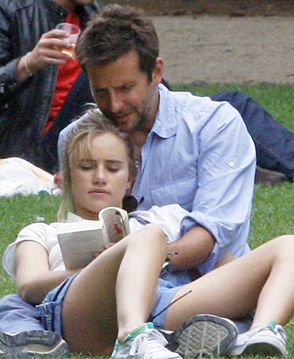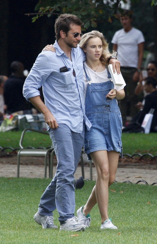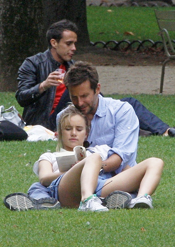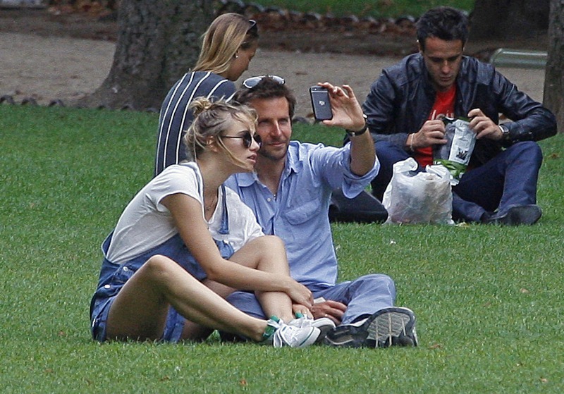 Anyway, here are Bradley Cooper and Suki Waterhouse on Sunday in a park in Paris. He’s not a billionaire and she’s not a hooker with a heart of gold but you don’t have to look too hard to find a Pygmalion comparison. A model could be a sculpture. Her youth could be inexperience. Well, at least he takes the time to talk to her.