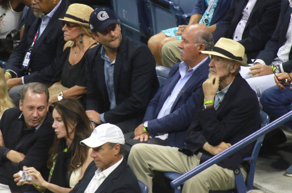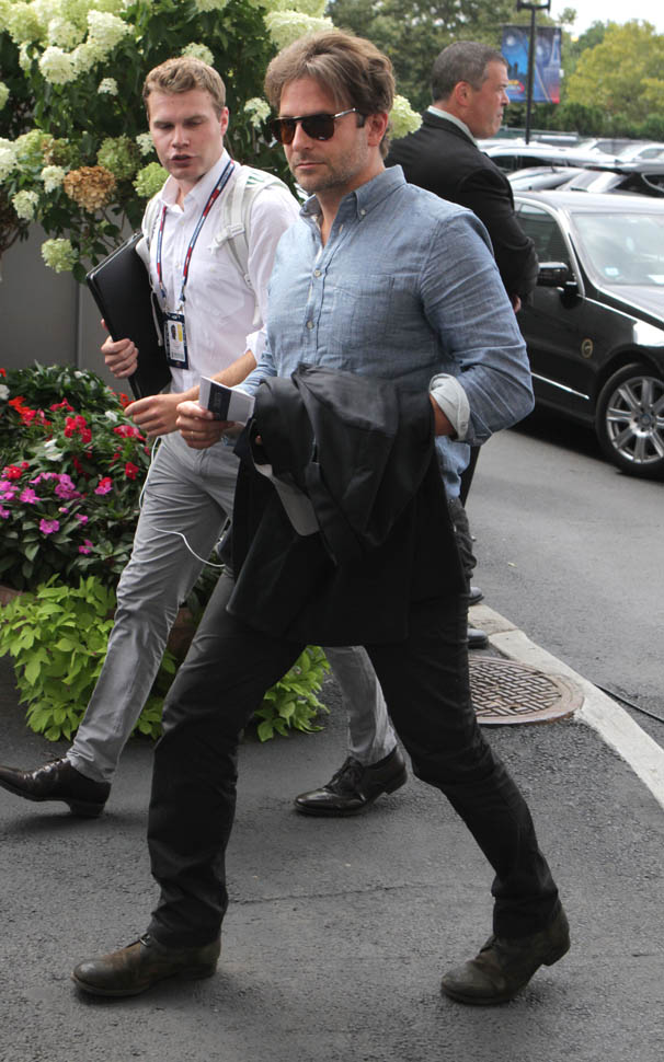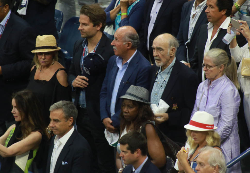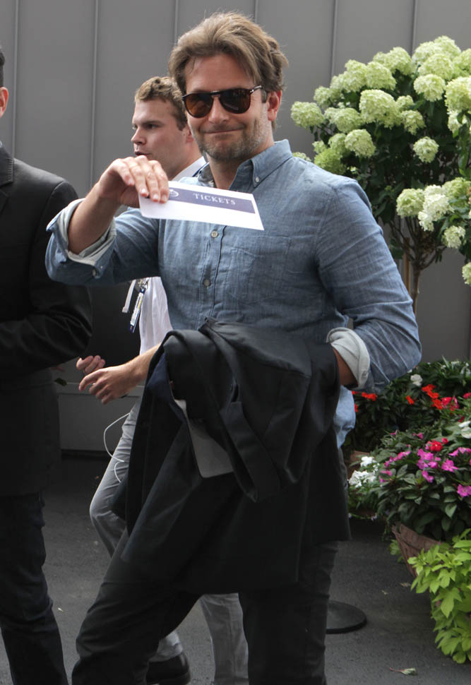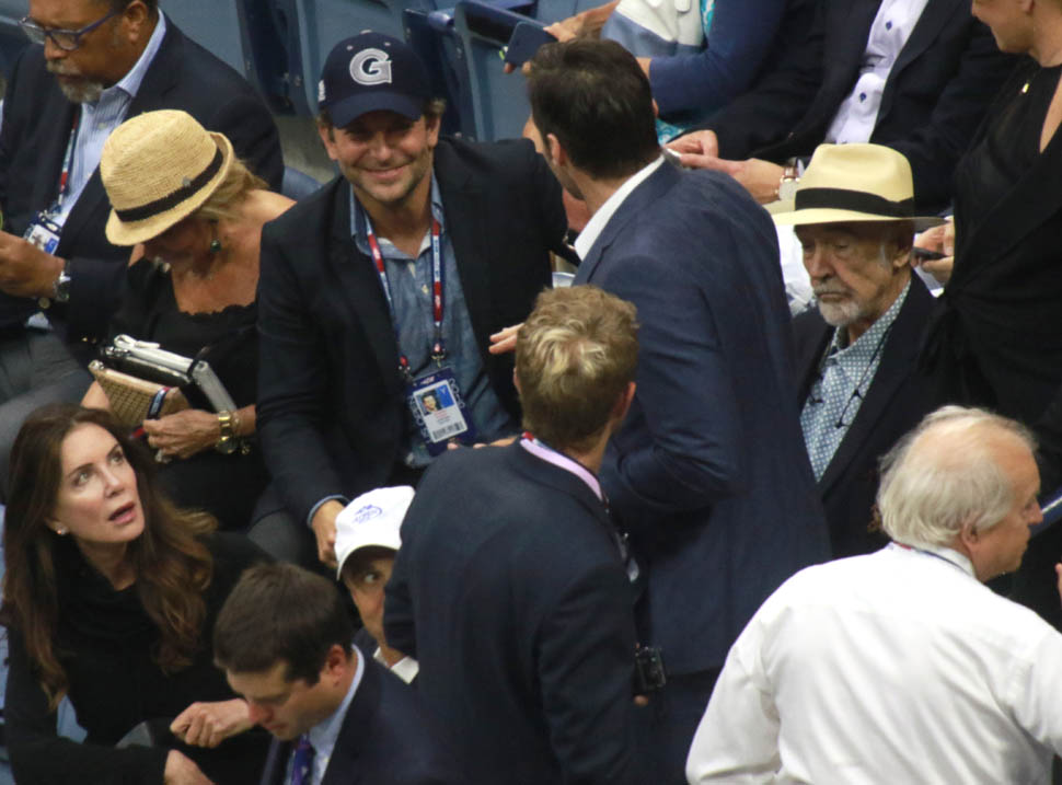 Bradley Cooper, big tennis fan, was with his ma, Gloria, at the US Open Men’s Final on Sunday. Irina Shayk is also currently in New York for fashion week. And she was at the US Open too…sitting next to his sister (thanks Martin!):