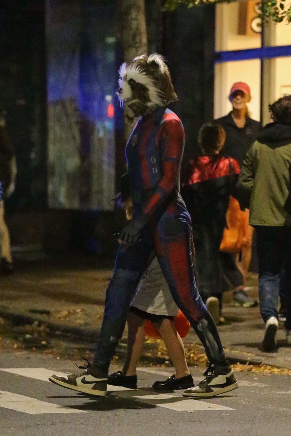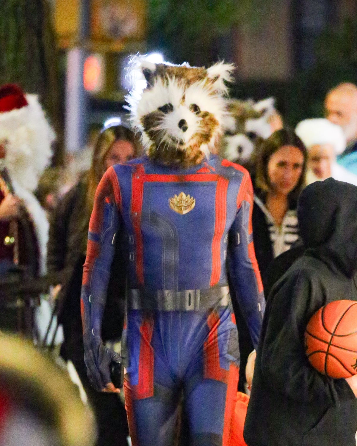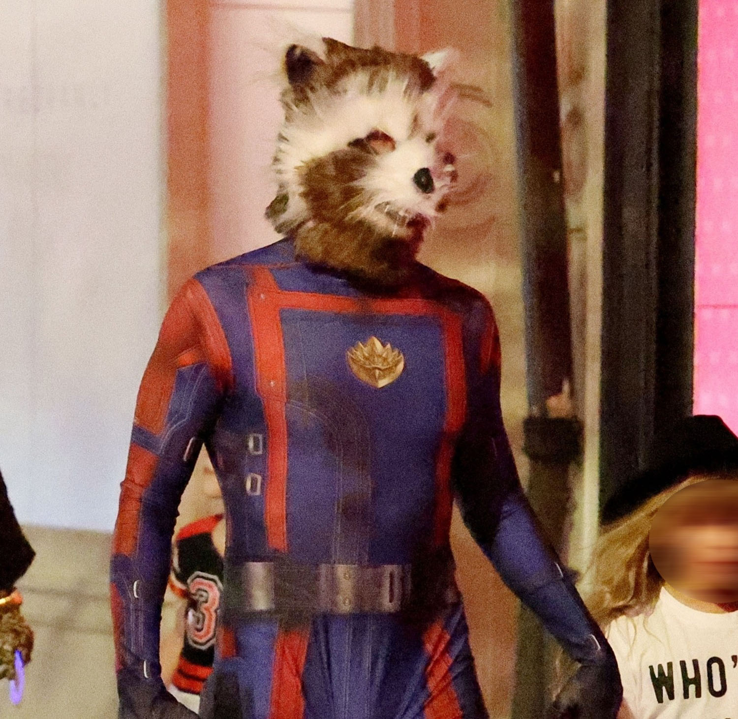 But wait, because Bradley Cooper took a look at Glen Powell dressing as a random movie character and said hold my beer, because he dressed as ROCKET RACOON.
