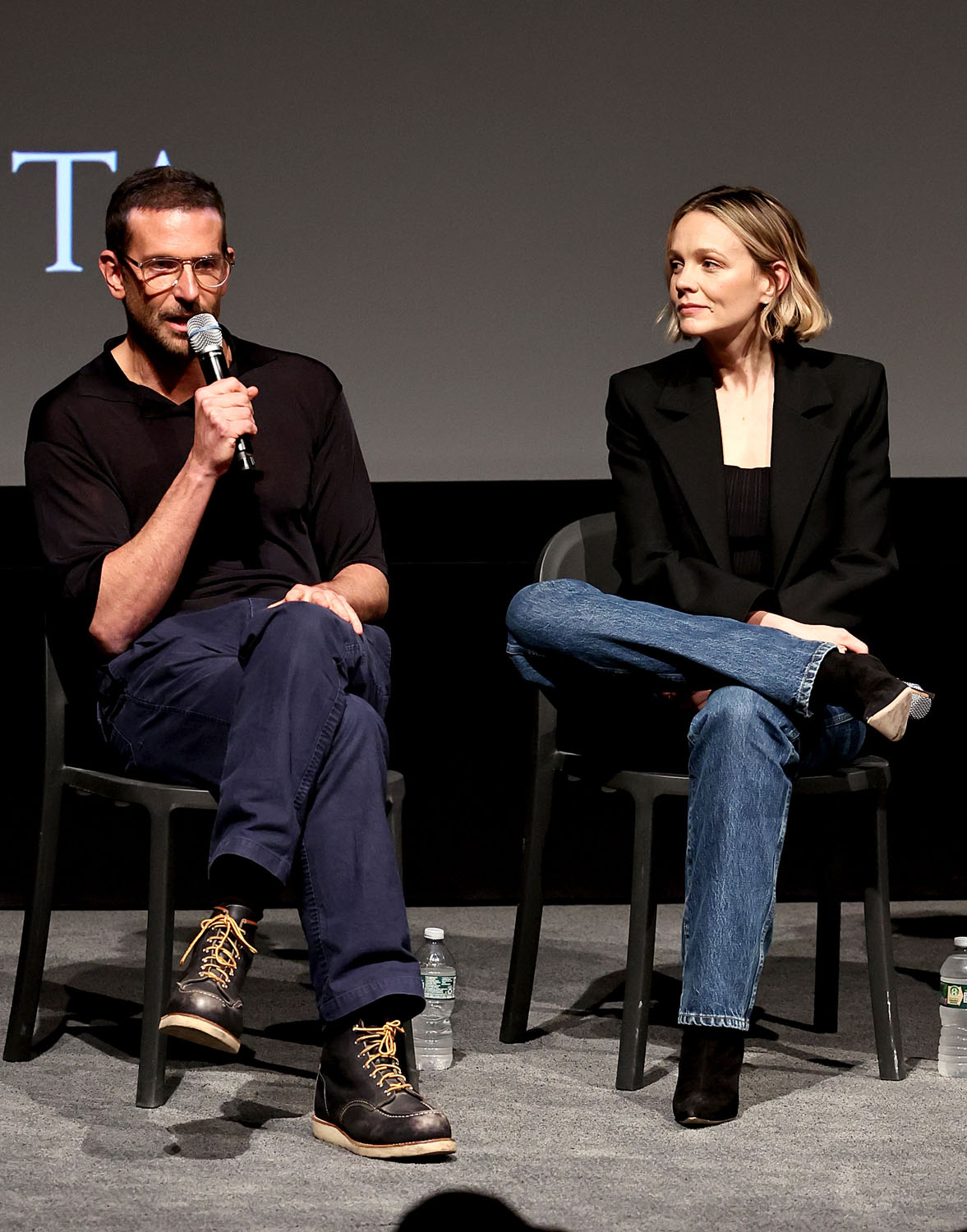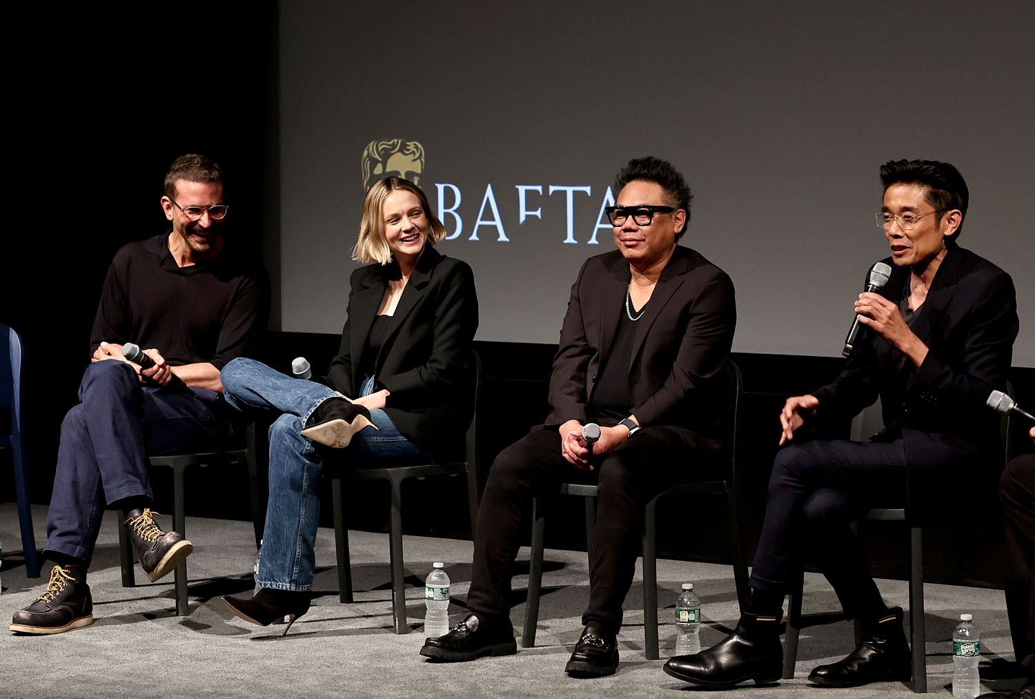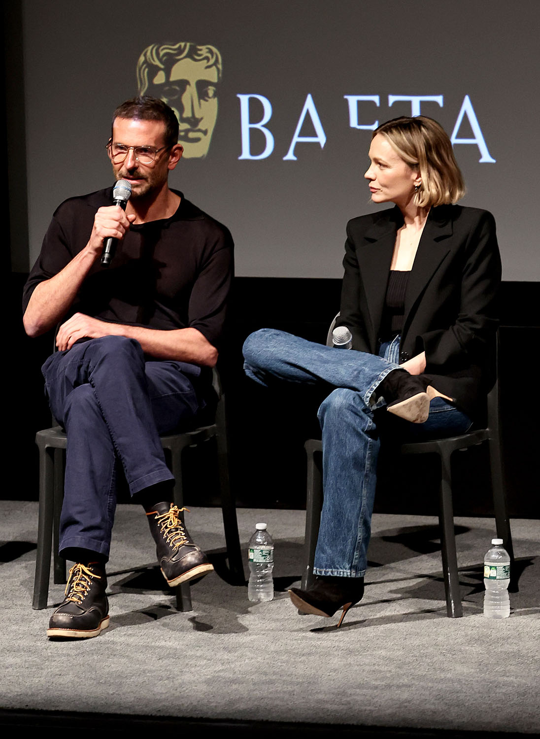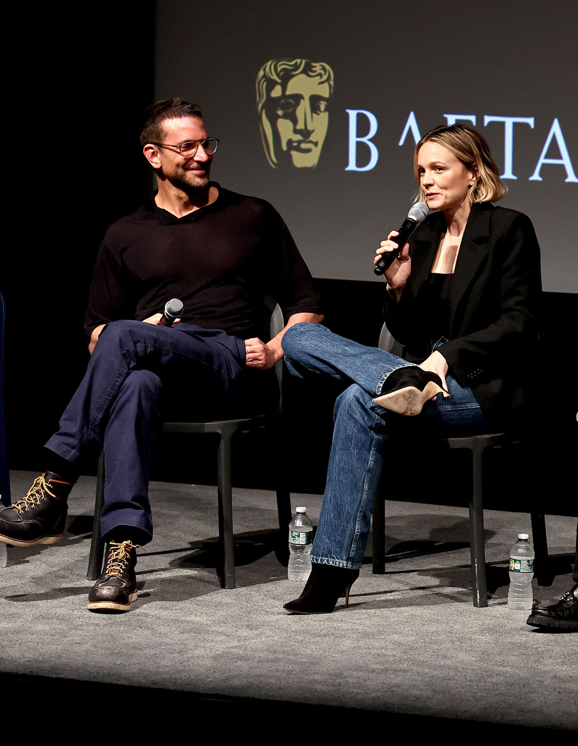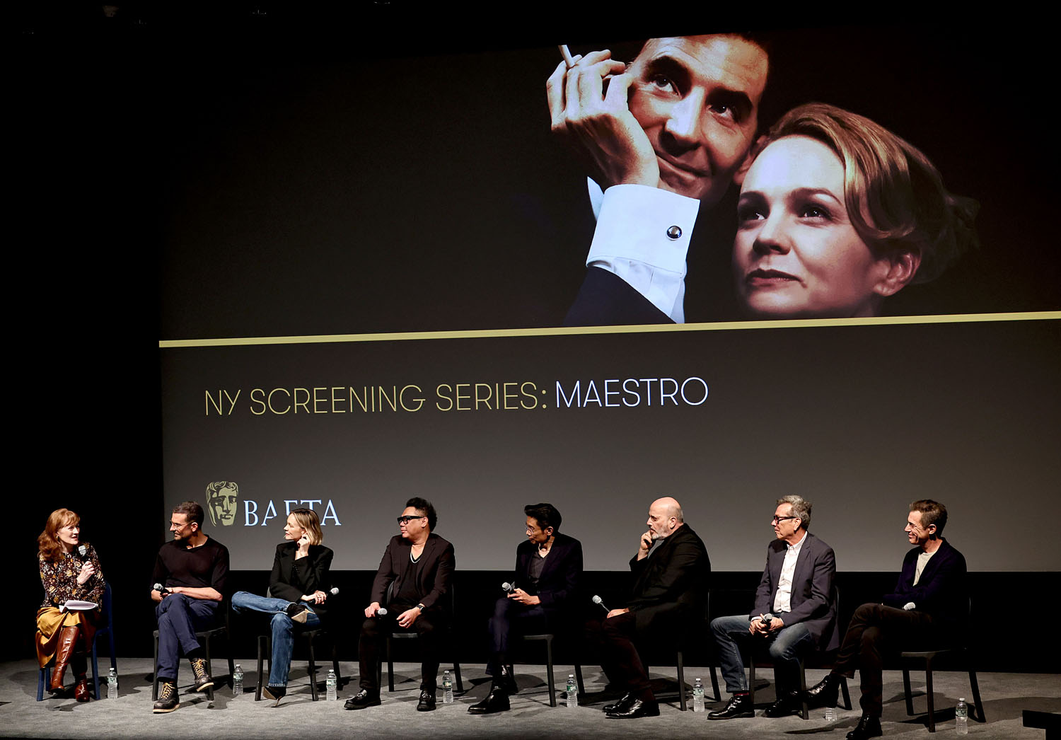 Promote Maestro, that is. After getting itchy as f-ck as the SAG-AFTRA stretched well into autumn, Bradley Cooper finally gets to promote Maestro for real. He was at a BAFTA screening for Maestro held in New York yesterday, along with co-star Carey Mulligan, cinematographer Matthew Libatique, and makeup artist Kazu Hiro, who designed the prosthetic makeup for the film, including Coop’s controversial Leonard Bernstein nose. It’s the first official appearance Coop has been able to make for Maestro during award season, and all year, I think. Promotion for the film didn’t start until after the strikes did.