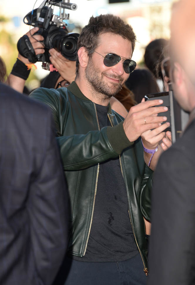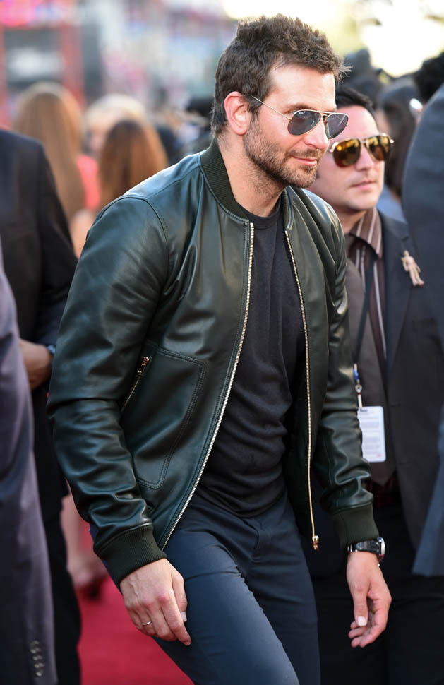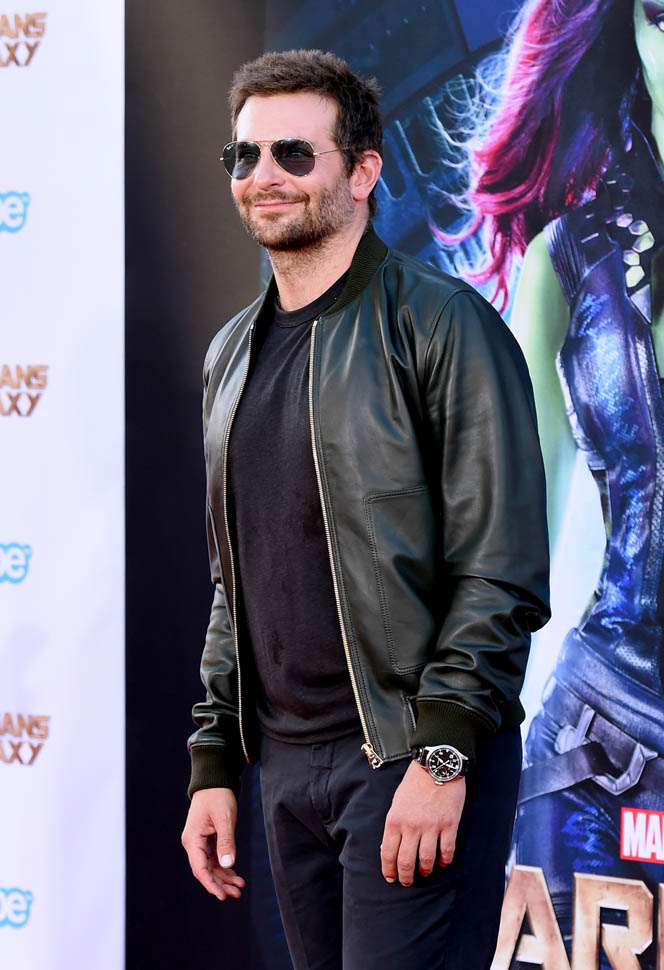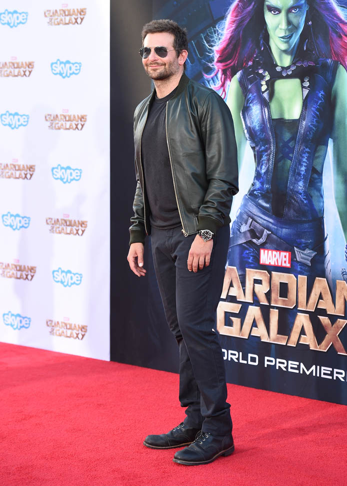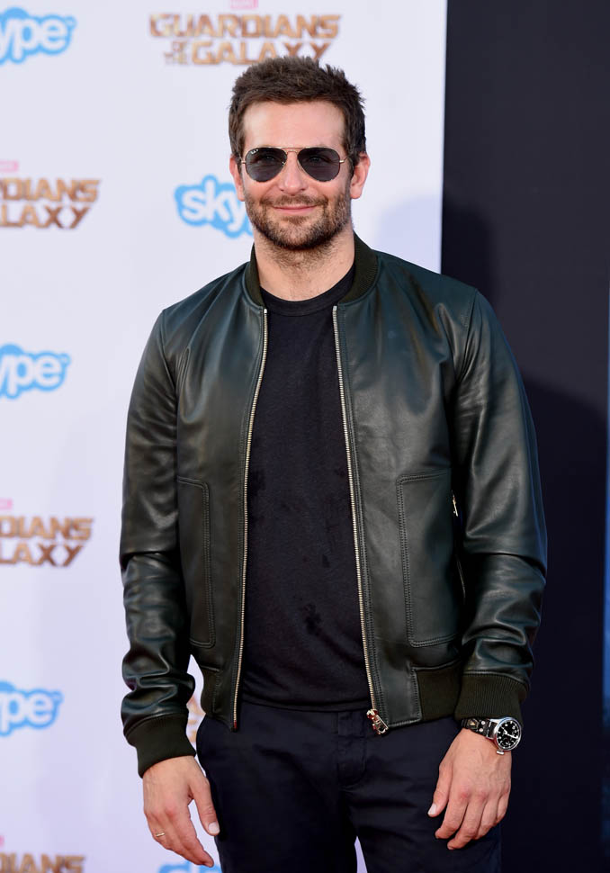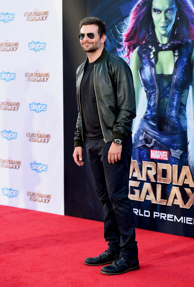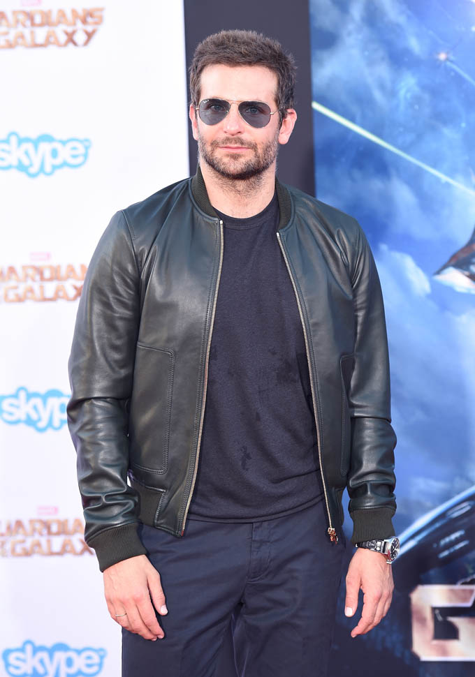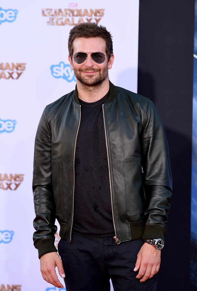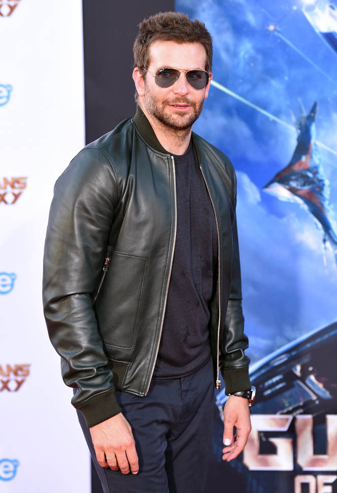 Now here’s someone who would never, ever trash-talk Leonardo DiCaprio. Or risk excommunication. Check out Bradley Cooper in a leather bomber at the Hollywood premiere of Guardians Of The Galaxy last night. As Sarah’s been saying, his Rocket Raccoon almost steals the movie. His voice performance in the role is said to be outstanding. But…they’re also saying it’ll be Chris Pratt who will rise from the Guardians as the Big Shiny New Movie Star. Sarah’s covering Pratt next article.