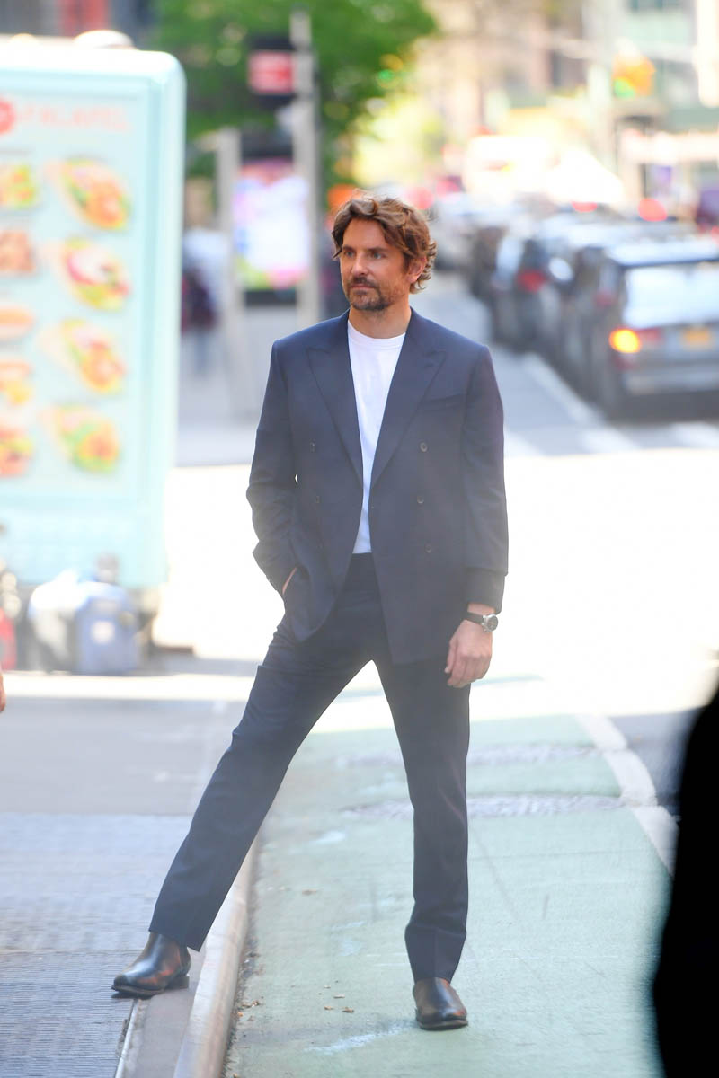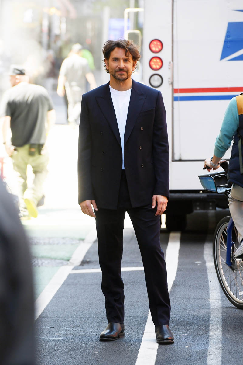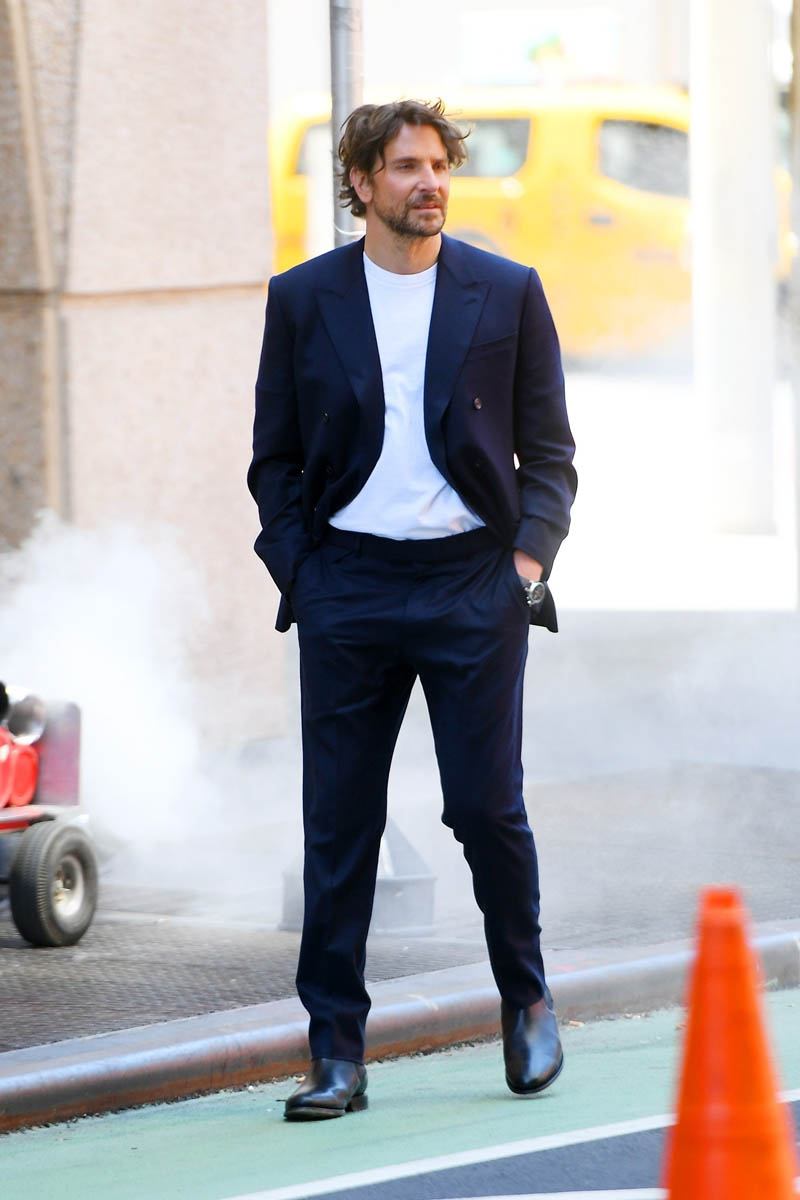 Bradley Cooper has been in New York for months on pre-production for this Leonardo Bernstein biopic. They’re supposed to start shooting really soon and just last week announced that Maya Hawke has joined the cast alongside Bradley and Carey Mulligan. Before that though, there’s time to make some money and BCoop was seen in New York this weekend doing a photo shoot for Louis Vuitton.