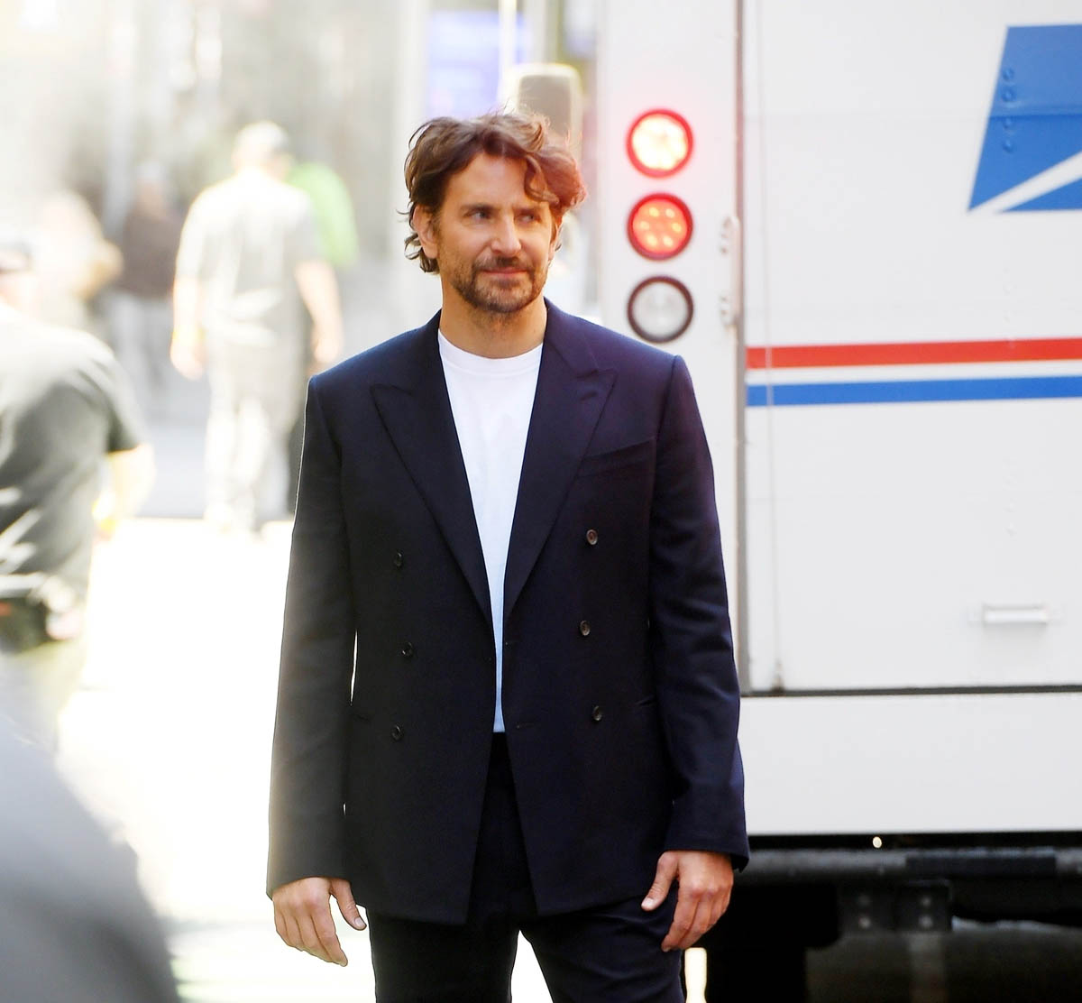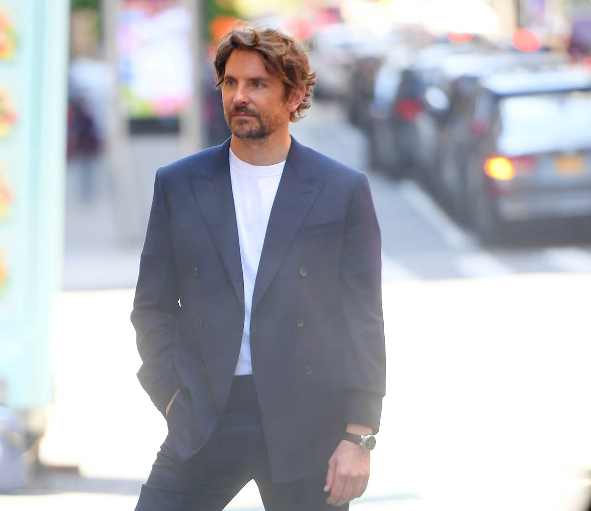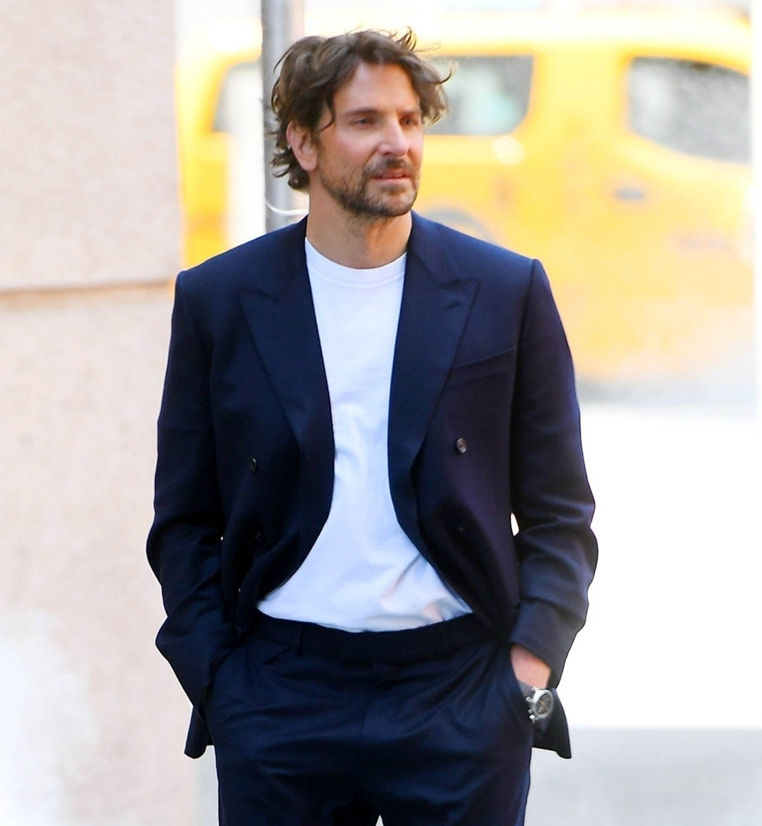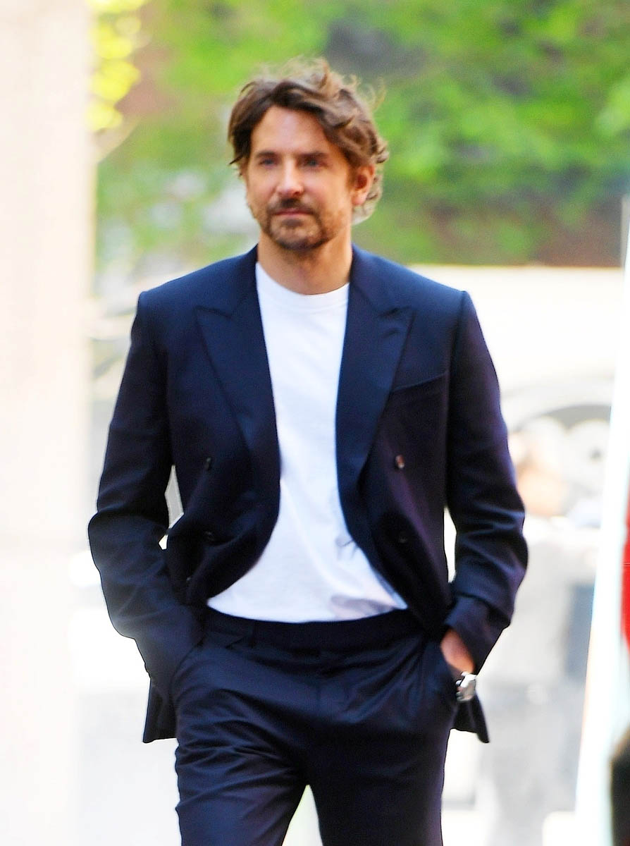 And he looks SO good. Like really, really good. That’s the whole point of this post – I saw these pictures on the weekend and my reaction was, holy sh-t, Bradley Cooper looks super hot. For me BCoop’s hotness is always in relationship to his hair. The hair, here, has been styled for a luxury fashion house so he’s definitely serving, and the suit and the t-shirt fit perfectly and he’s in model mode so there’s obviously some swagger here with the posing.