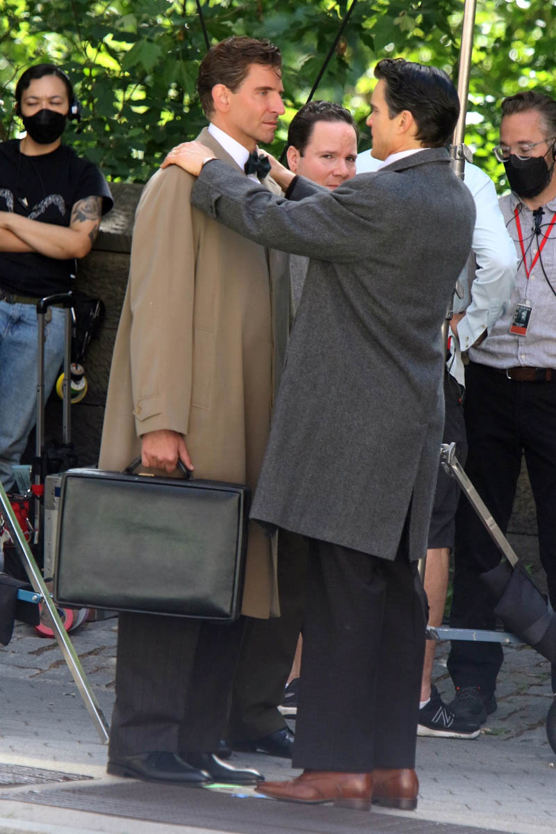 And Bradley and the cast continue to shoot in New York this week. Yesterday he was seen on set with Matt, in an unknown role, filming a kiss scene. I’m into it and I’m wondering how into it people will be when the film comes out. You remember all the shipping that happened with Jackson and Allie and ASIB? Will we see the same energy here for Maestro? Two beautiful men, both with great hair, give me all the kisses, I want lots and lots of kissing.