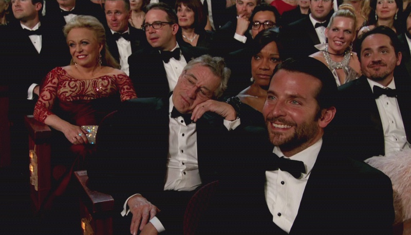 But he arrived at the event knowing he wasn’t going to win, didn’t win, and proceeded to be the most adorable support for Jennifer Lawrence that we got to see (since the cutaways to people we care about were almost non-existent), even as De Niro and Jacki Weaver looked pleased, but tired, more than anything. He wasn’t even welling up all emotional, he was just straight up happy for her. Sitting up like a puppy!