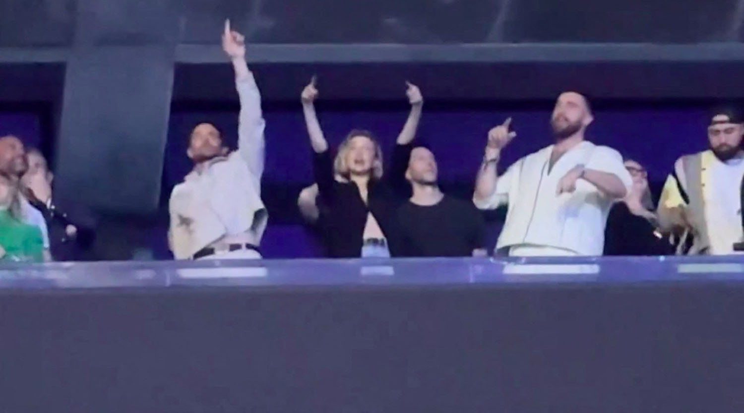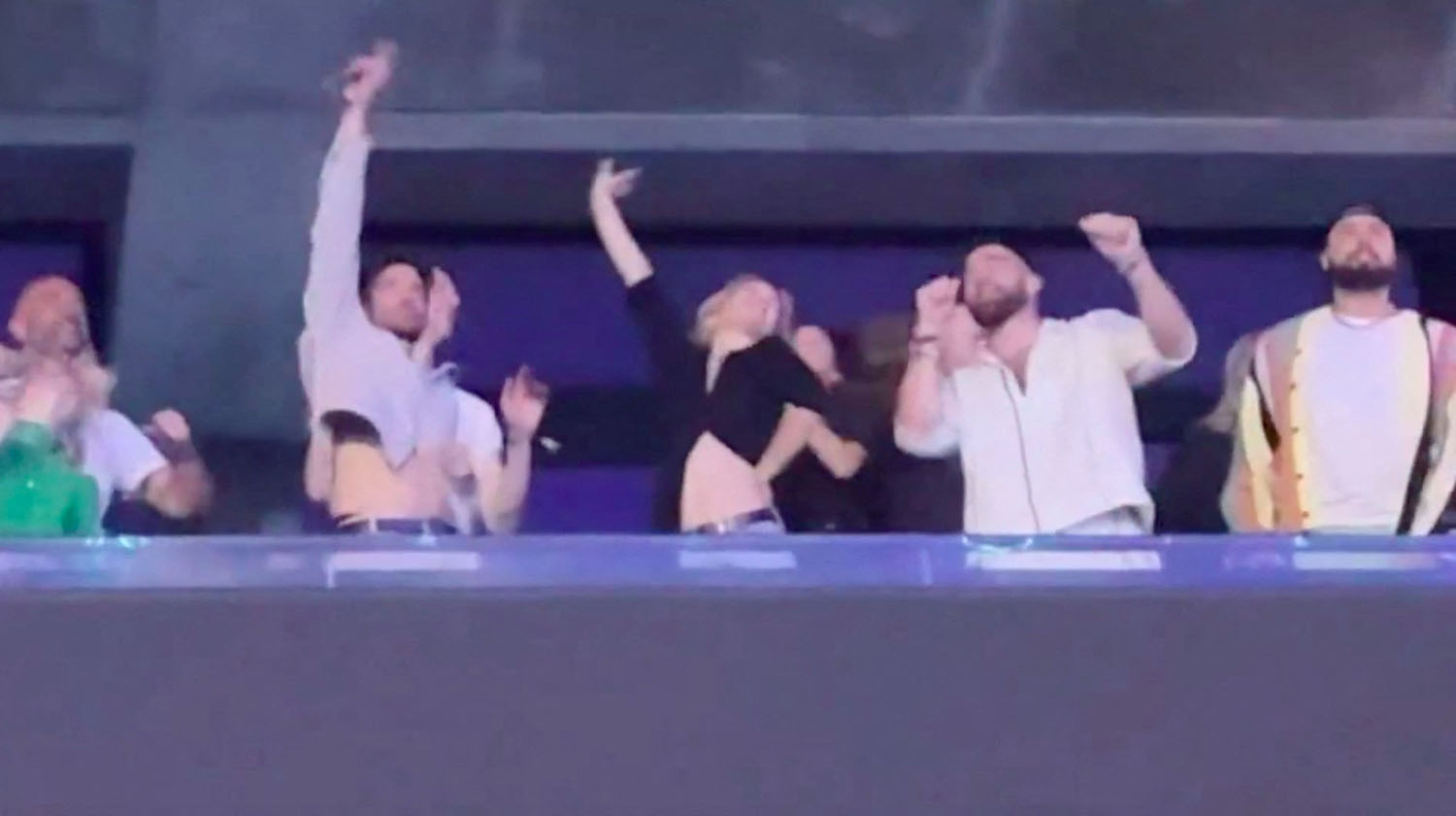Taylor sang “So High School”, a new track that is presumably about Travis. He knew all the words…