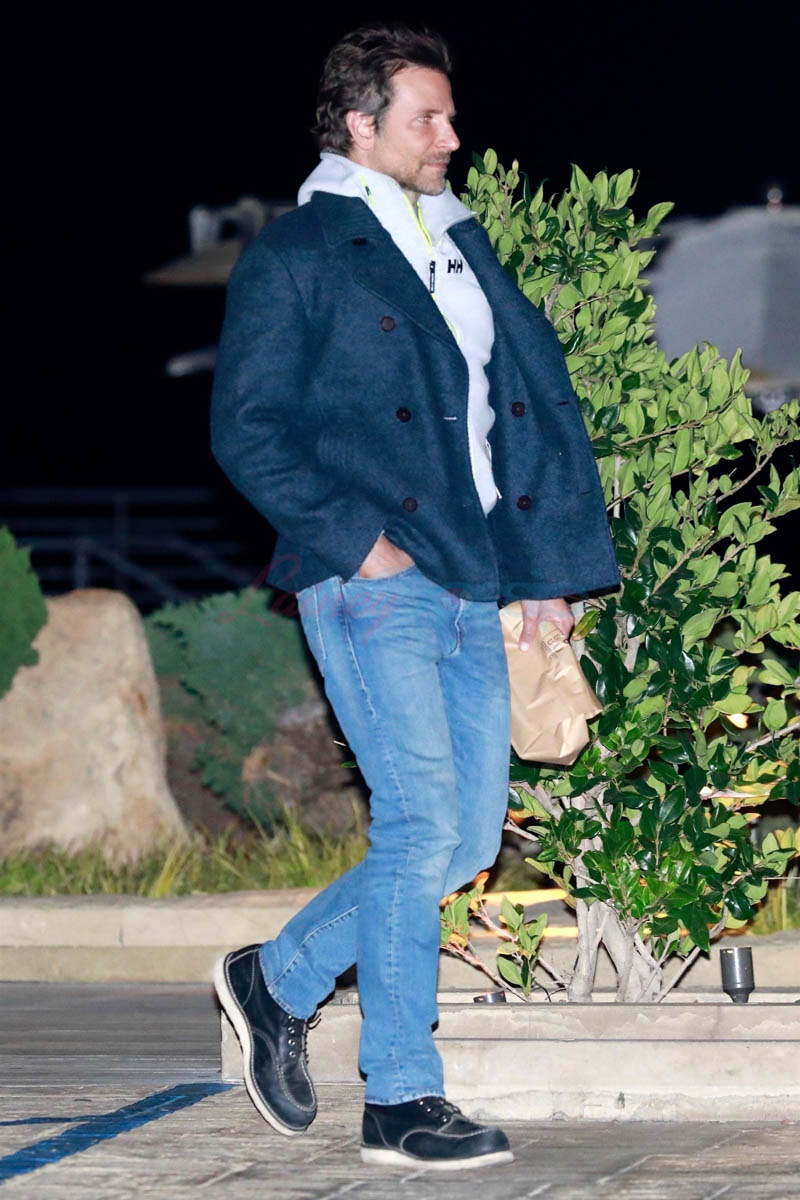 Here’s Coop out last night for dinner in Malibu. That hair looks like it’s growing out. That beard is too. Is… the Jackson Maine on his way to award season?!?