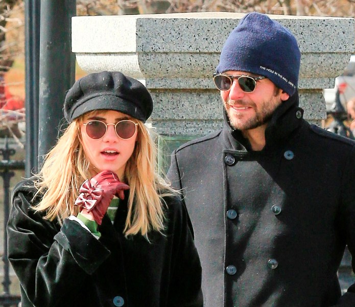 So here’s Bradley Cooper with his new girlfriend Suki Waterhouse in Boston. He’s shooting a movie there and has evidently asked her to join him. US Weekly says he’s really into her. He’s 38. She’s 20. A model, obviously. That would mean he was just going to college when she was born? Fine. No problem. But sh-t on him as hard, or harder, than you did on Taylor Swift then for Conor Kennedy and Harry Styles.