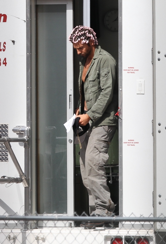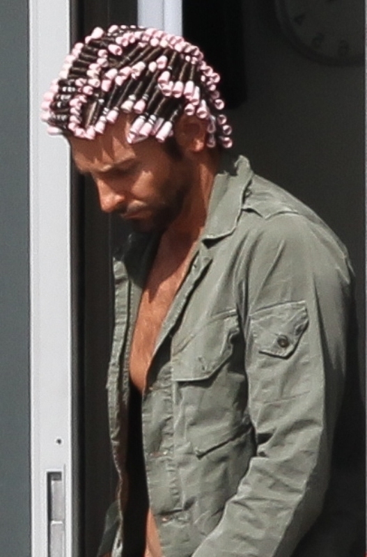 Bradley Cooper was papped on the set of the upcoming David O Russell movie with perm rollers in his head. He's previously mentioned that he was trying out a perm for a role. I suppose that's why his hair looked so sh-t during award season. But worth it, right? David O Russell directed Coop to his first Oscar nomination in Silver Linings Playbook. Could happen again, right? Especially since he's messing with his hair! It's like how Bale messed around with his in The Fighter. And Matthew McConaughey's weight loss in the upcoming The Dallas Buyers Club. Totally the same level of physical transformation. It just depends on how you sell it.
