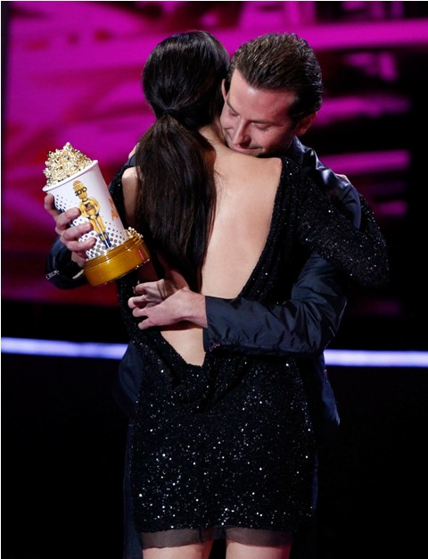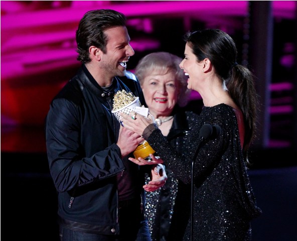 Last time Sandra Bullock was at an awards show and kissed a girl (Meryl Streep) Bradley Cooper was standing on stage. Same goes for last night. It’s a happy coincidence.