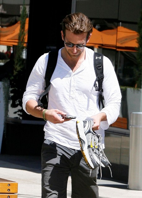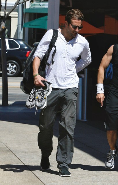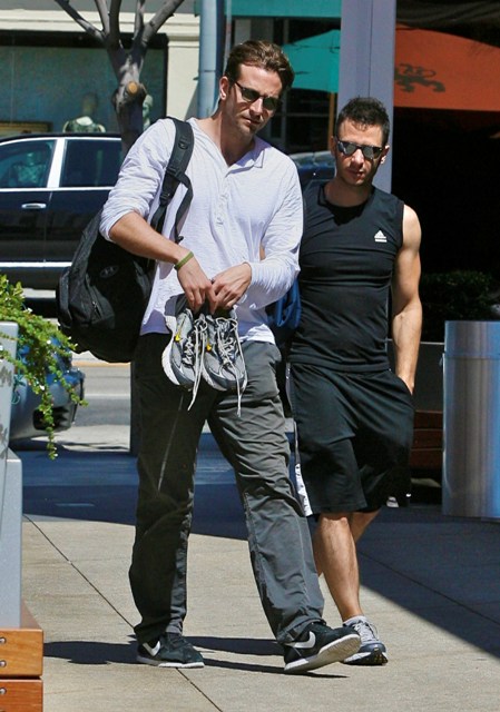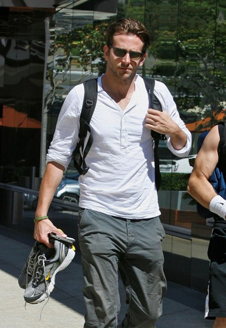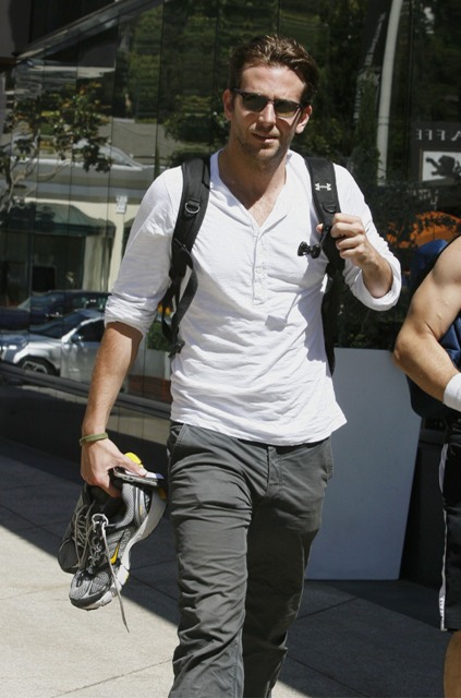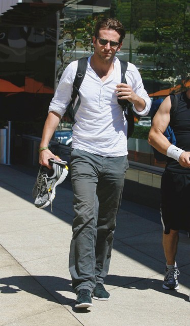 Bradley Cooper was spotted in West Hollywood after hitting the gym yesterday in what looks like the same outfit he was wearing in Vancouver last week. He shaved. Looks good, non?
