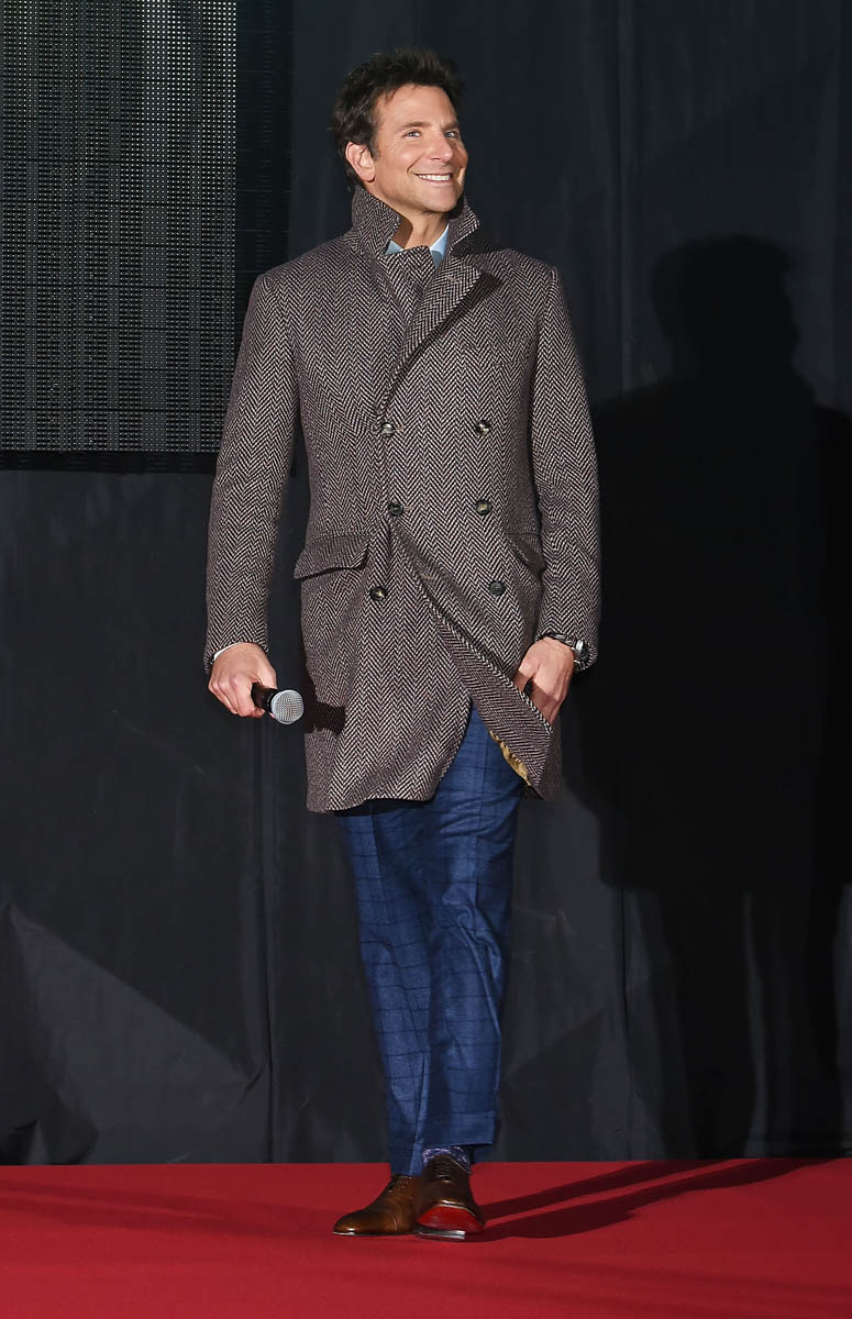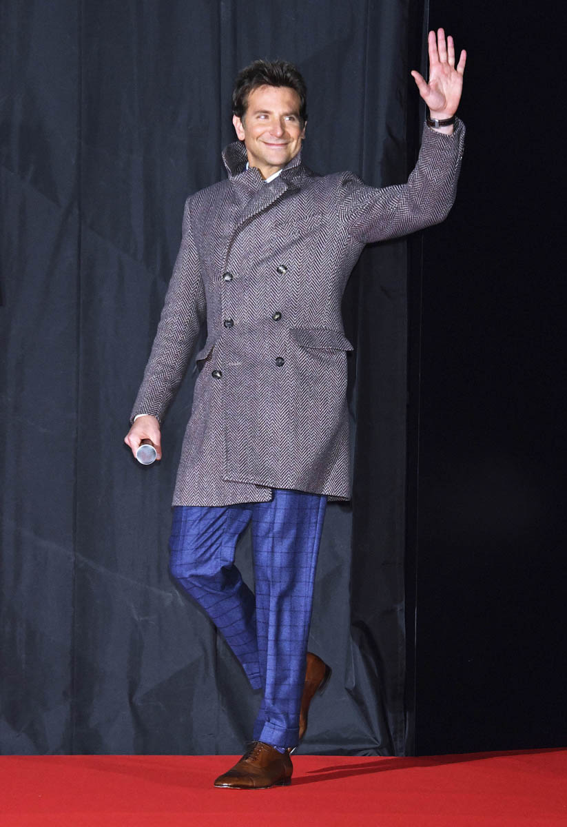 Here’s Bradley yesterday promoting A Star is Born in Tokyo. I wonder if someone told him that the Japanese audience likes a clean shave. Because that is a FRESH shave. That is not a Jackson Maine shave. Some dudes look great with zero facial hair. Is Bradley Cooper one of those dudes?