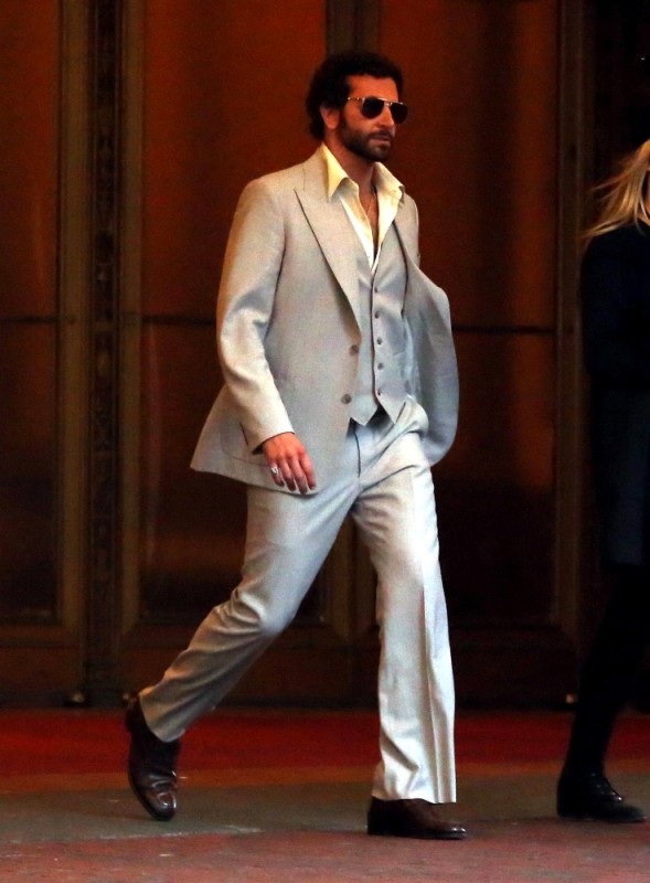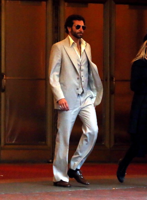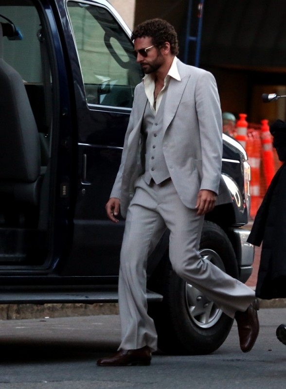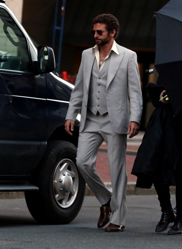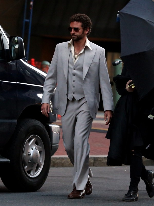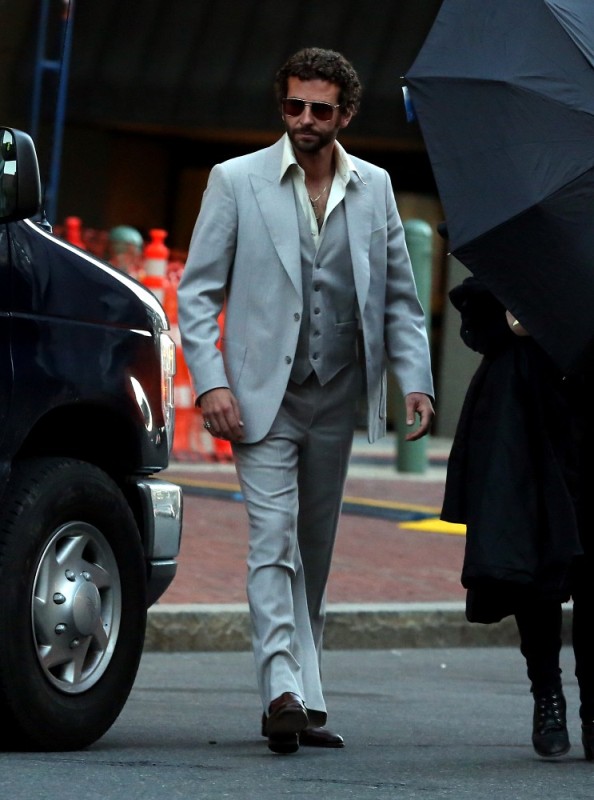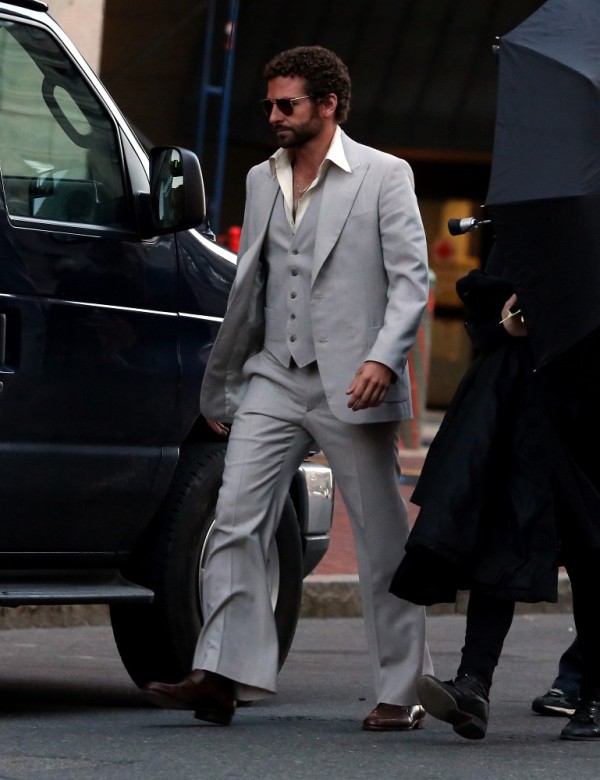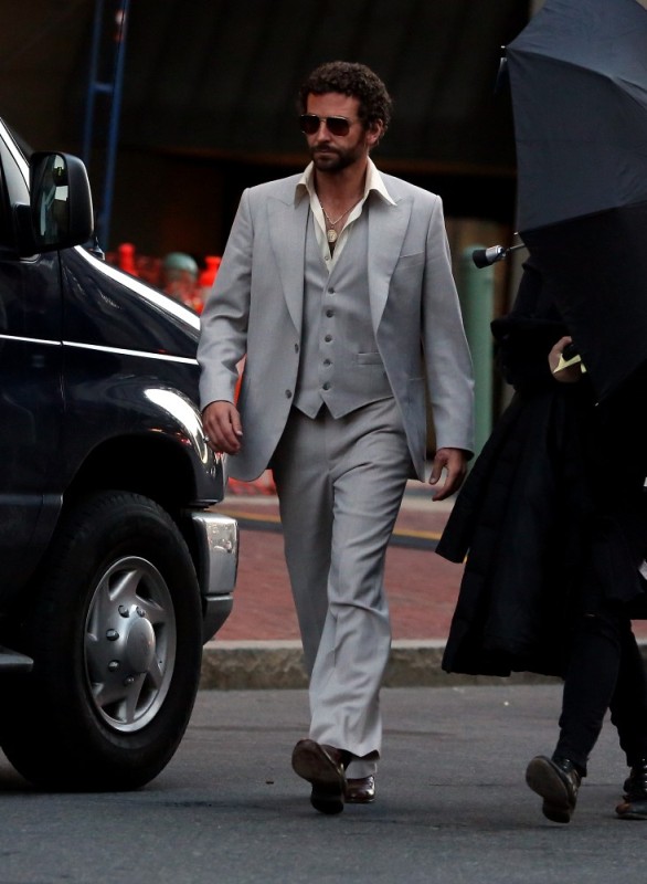 It’s been two days since we had our first look at Bradley Cooper’s perm and still it makes me so happy. Here are some new shots of Coop in costume, with the perm, working on the new David O Russell ABSCAM movie in Boston. Coop can totally pull off full 70s, non?