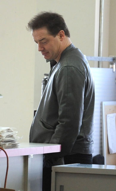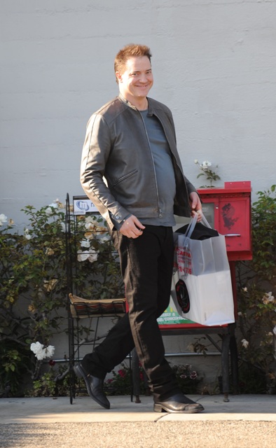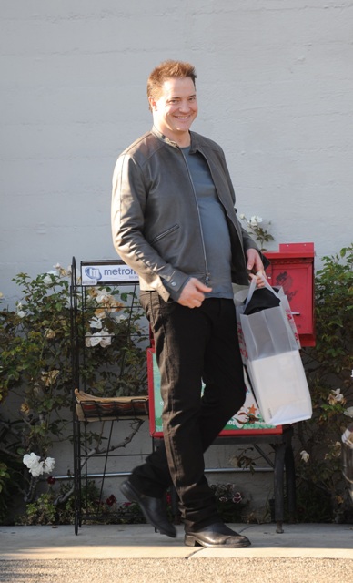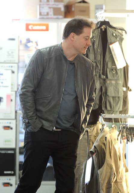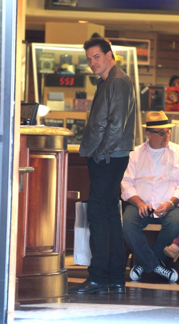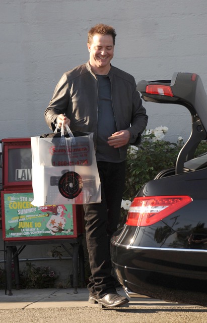 It’s Brendan Fraser. The title should be self explanatory, non? Fraser was spotted shopping at Samy Cameras yesterday in LA spending some of that Mummy money on photography. And he needs another Mummy movie soon. Because lately Brendan Fraser has been for sh-t at the box office. Fraser can currently be seen in theatres in a movie called Furry Vengeance. It was released at the end of April, should be kicking around in a few cinemas still, earning an impressive 6% review rating and 0% from top critics and not that much better in ticket sales. Extraordinary Measures with Harrison Ford in January was the same.