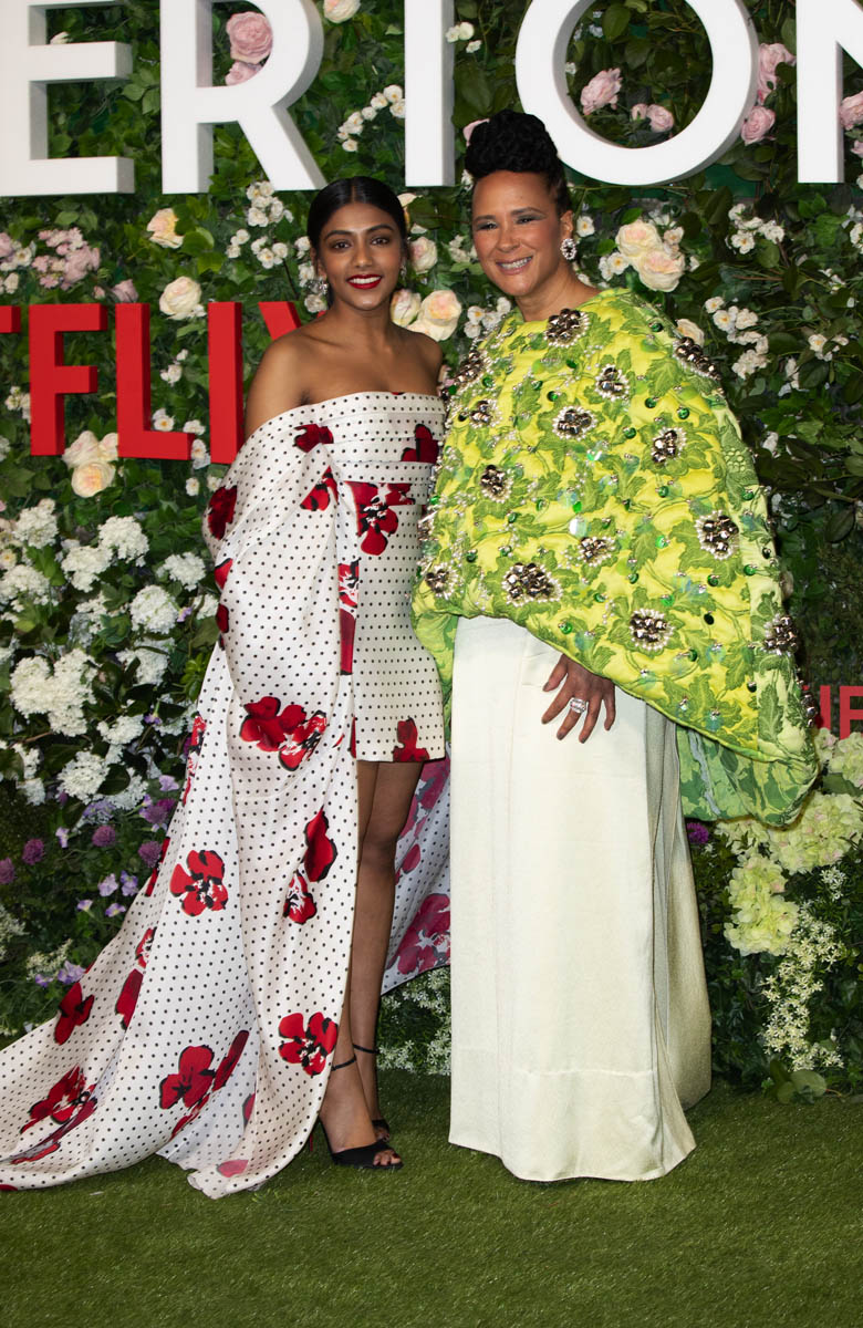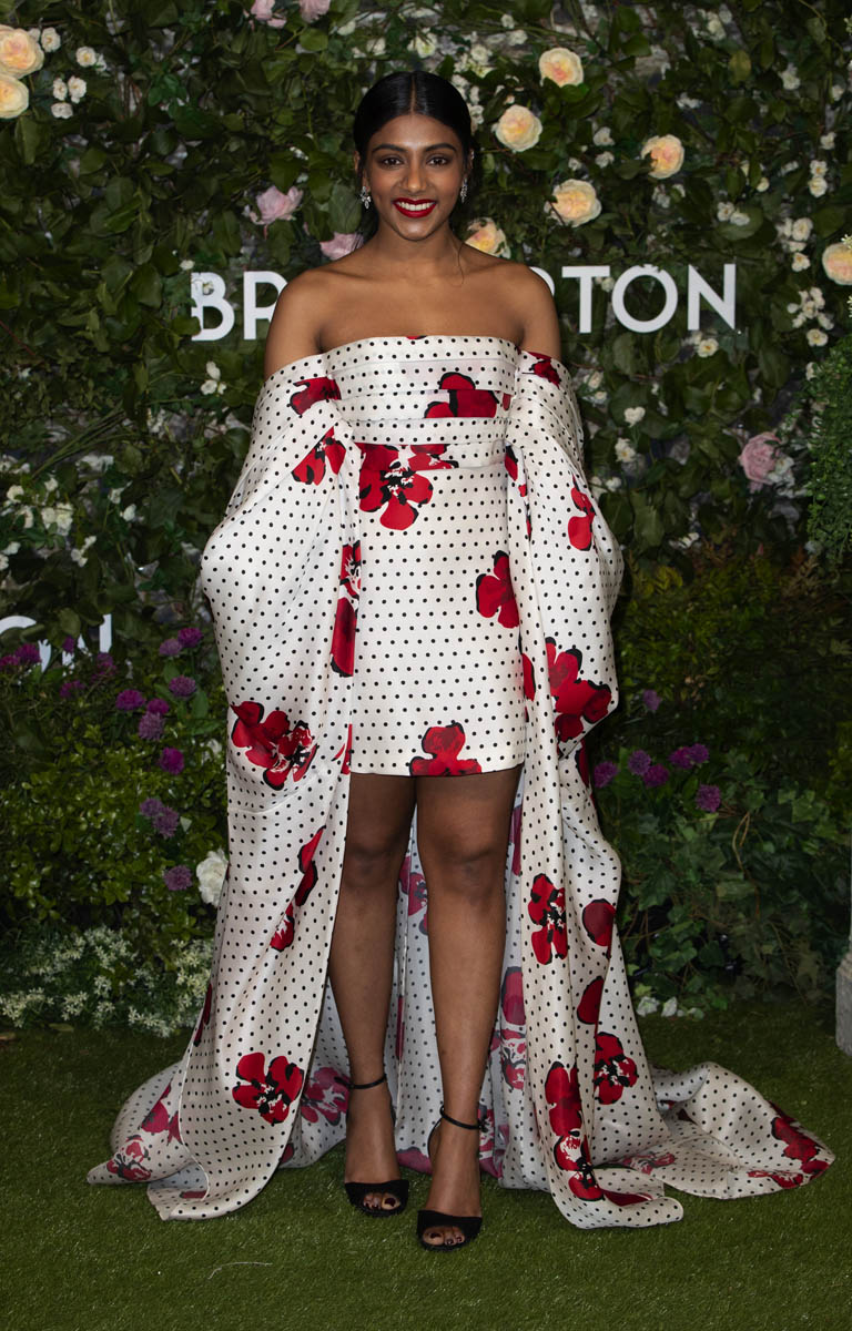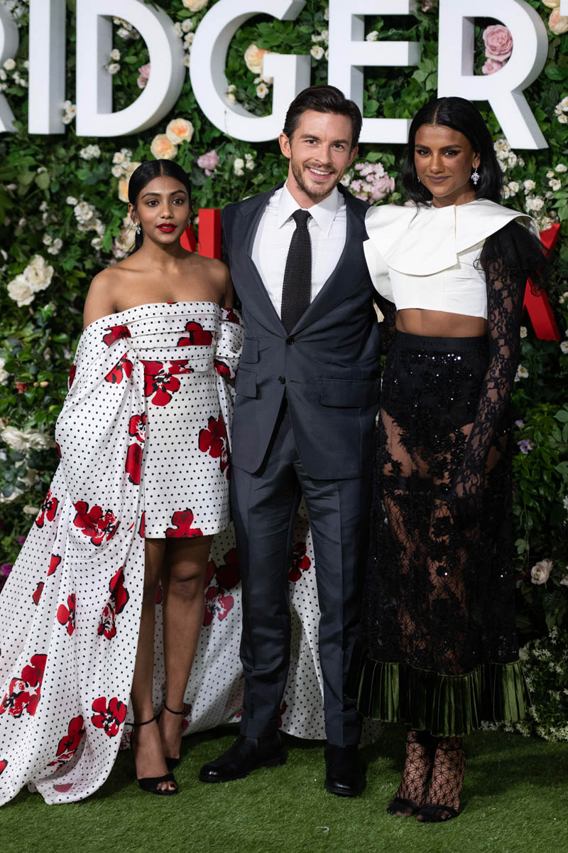 Somehow, it only just occurred to me that Bridgerton and Moon Knight premiere only a week apart. I don’t know how I never connected that, except that I never know what day it is and time isn’t real anyway. That means, however, that it’s a big week for red carpets as the high-profile casts of both these shows do their publicity promenades. Let’s start with Bridgerton’s premiere last night at the Tate Modern in London. Unfortunately, Nicola Coughlan couldn’t be there because she tested positive for COVID after the BAFTAs (along with, it feels like, everyone else). But a lot of the cast was still on hand, including the central love triangle formed by Jonathan Bailey, Simone Ashley, and Charithra Chandran.