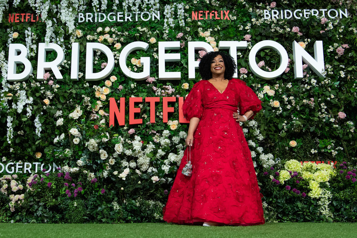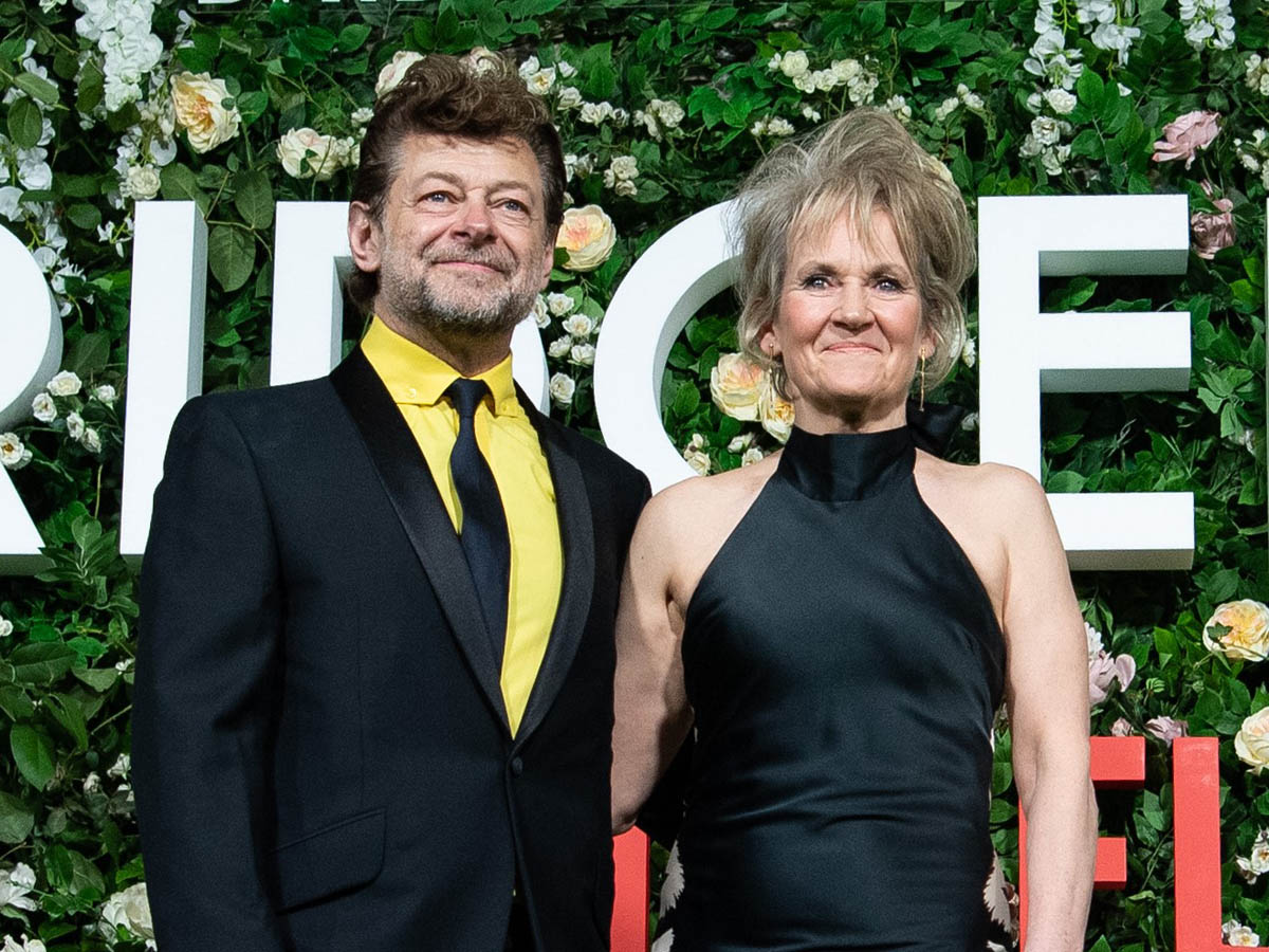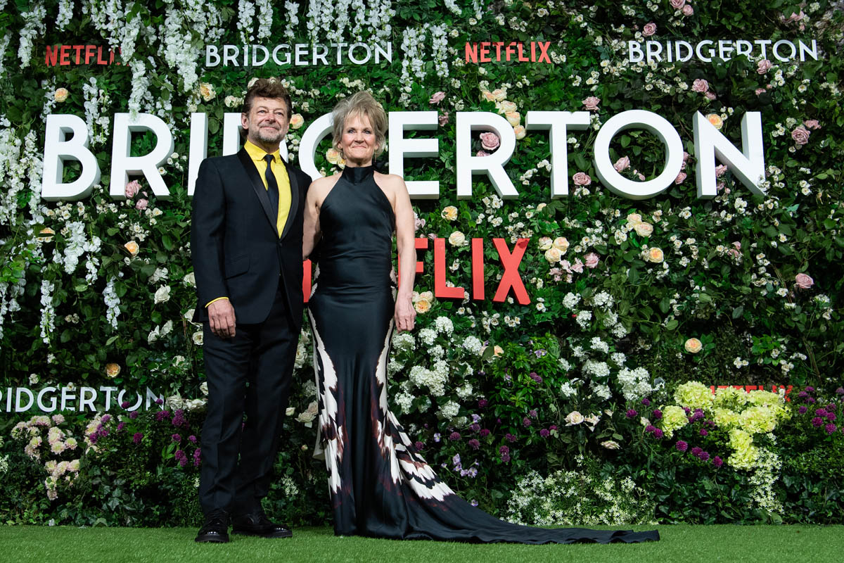 Also! I did not know this! But Andy Serkis is married to Lorraine Ashbourne, who plays Varley, the Featheringtons’ sour housekeeper. I didn’t even recognize her, she looks so different when she’s not scowling at something Lady Featherington just said. Also, Ashbourne is recycling her dress from the BAFTAs. Varley would approve of this household economy!