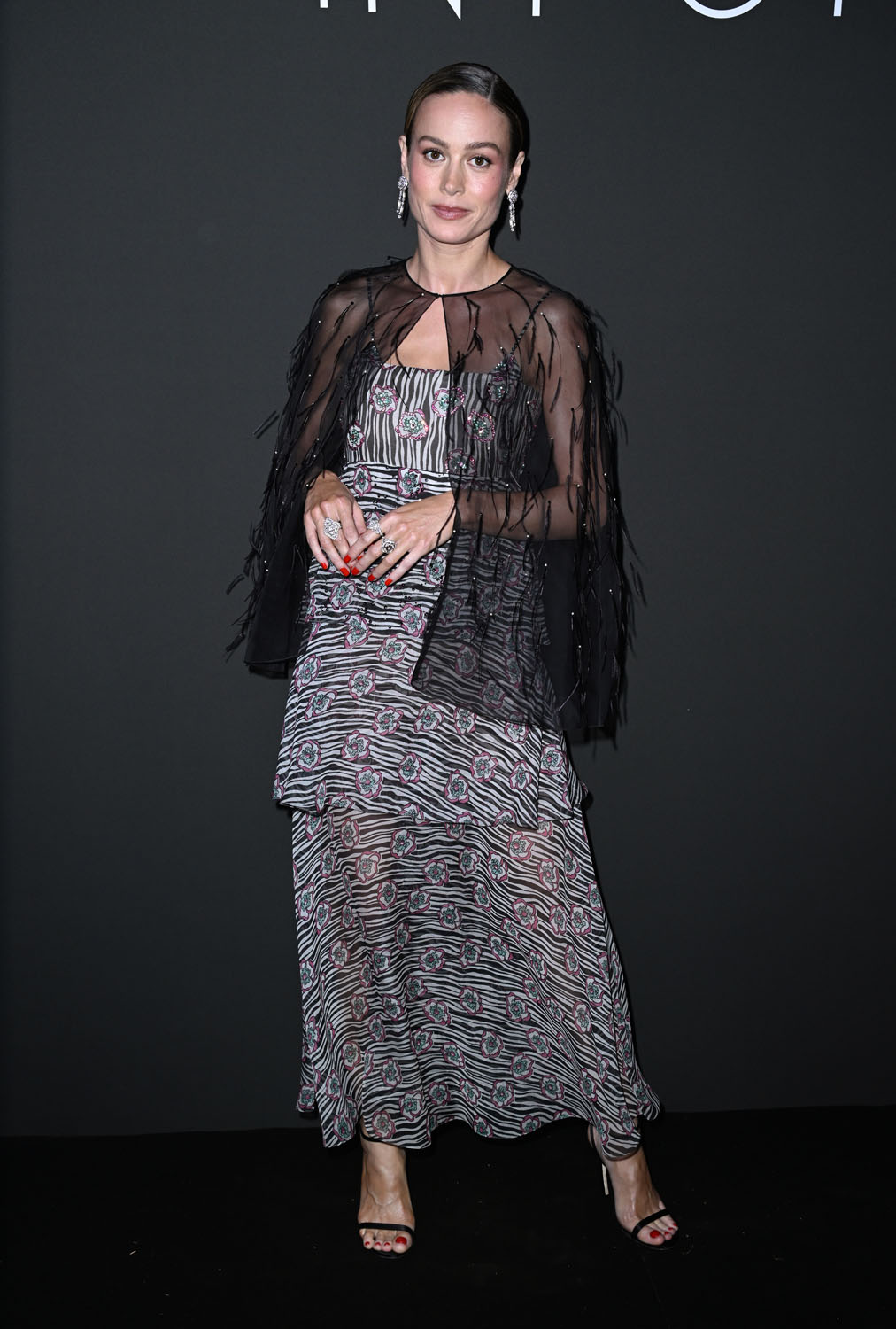Chanel and Kristen Stewart? For sure. Chanel and Margot Robbie? Unfortunately. Brie and Chanel, however, are a new thing. And a very good thing. From what we’ve seen in Cannes, Brie and Chanel are a much stronger star-to-brand fit than Margot has been. I posted about Brie in that amazing floral jumpsuit last week during the early part of the festival. And she’s held the standard since then with even more Chanel like this dress with a sheer cape from the 2023 RTW collection, a collection entirely inspired by Kristen Stewart.