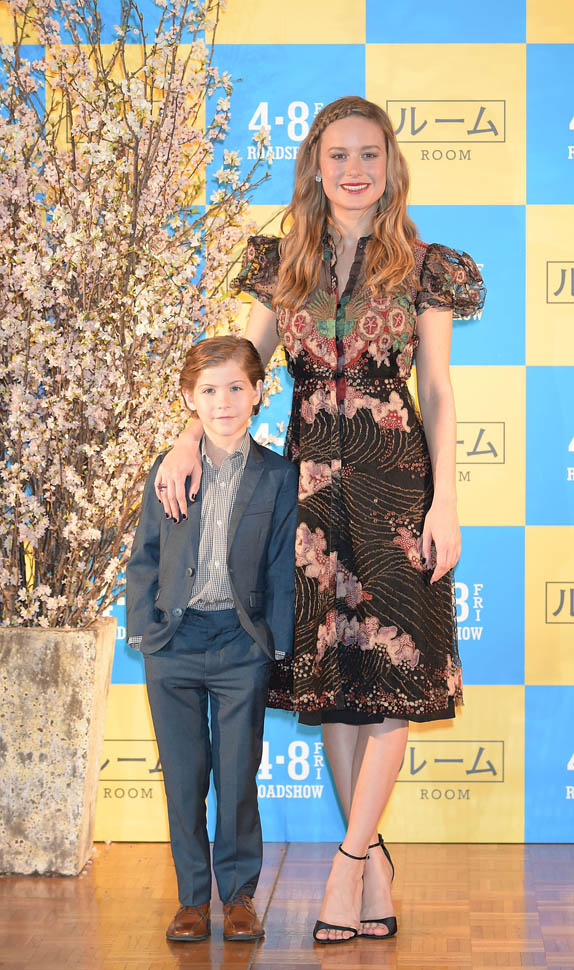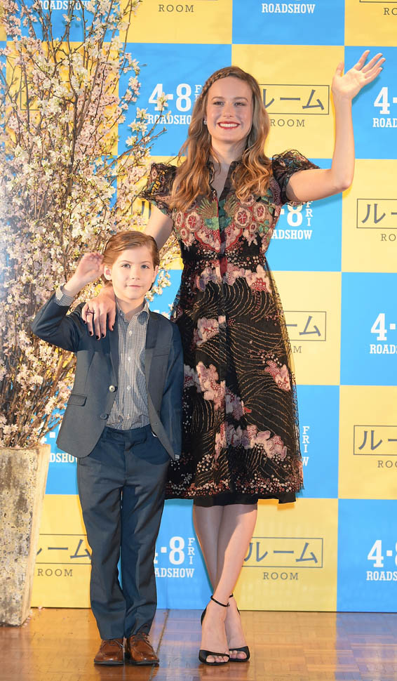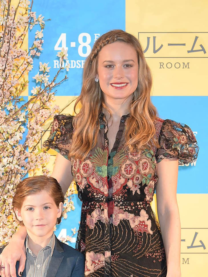 Brie Larson in Japan promoting Room in a beautiful Valentino dress with a strong cap sleeve….