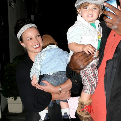 Her appearance for starters – here’s Britney at the weekend with her boys looking kinda cute, relatively speaking. Sure, Gwyneth would never wear that dress. But as far as I can see, there are no stains and her cooch isn’t creeping out the side, her skin looks rather fresh, and aside from the monstrosity of extensions on top her head…overall, I’d say we’ve seen worse.
